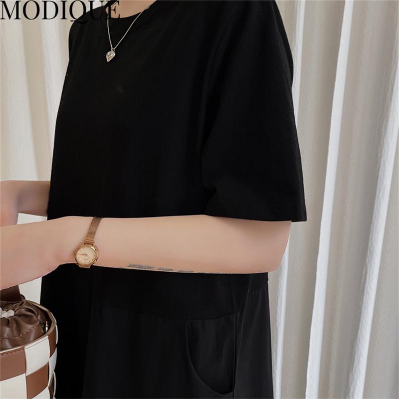 MODIQUE, летняя новая классическая рубашка больших размеров, женская свободная однотонная хлопково-льняная рубашка трапециевидной формы, повседневные женские платья с круглым вырезом и коротким рукавом