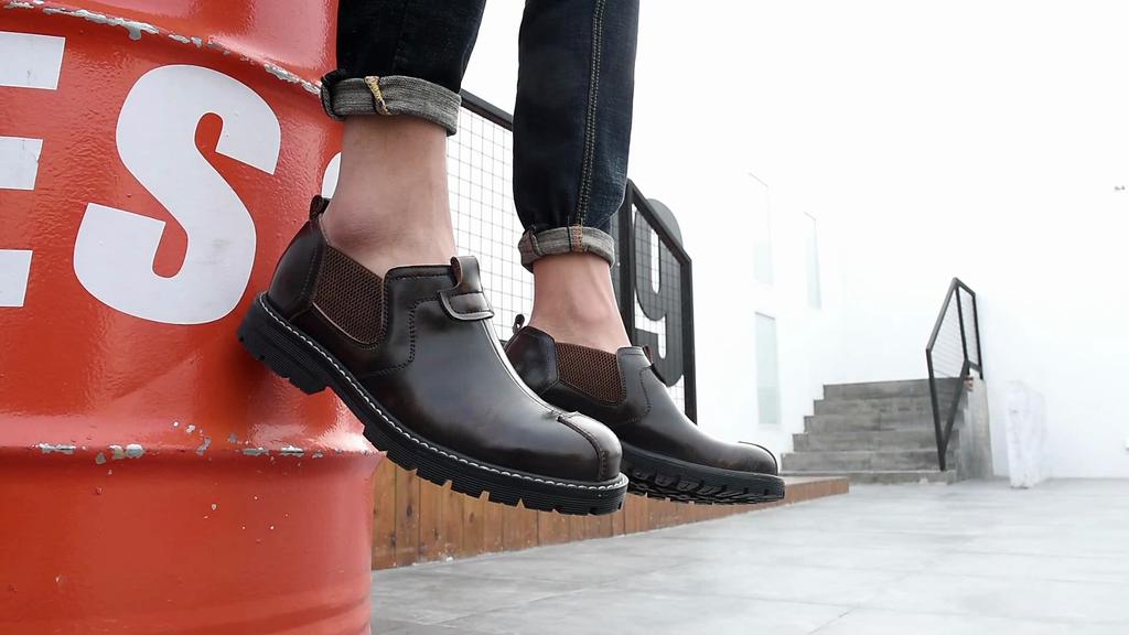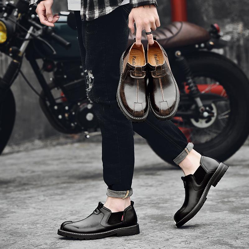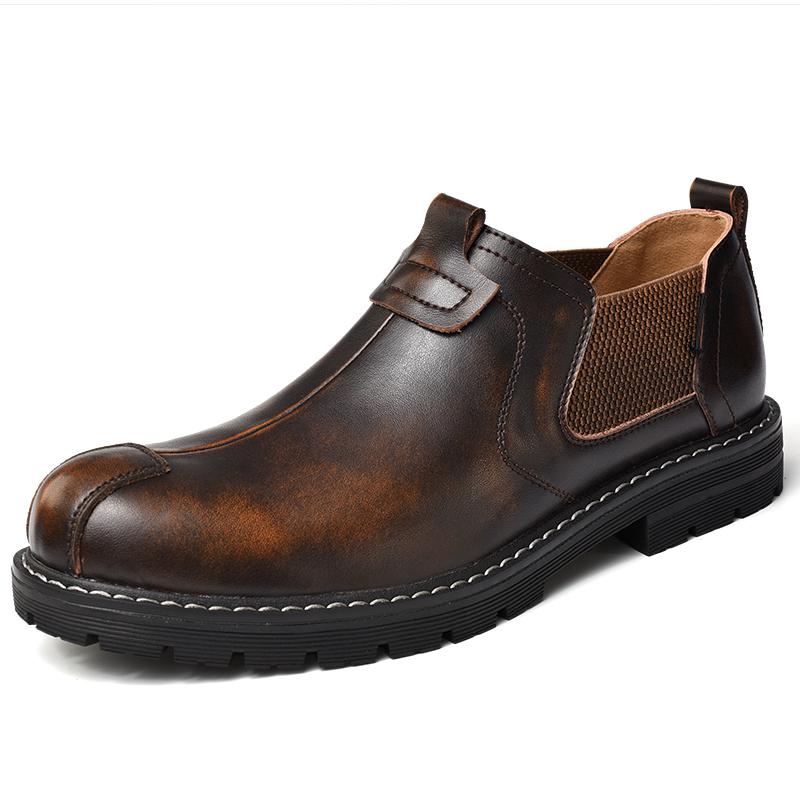 Мужская кожаная обувь на повседневных туфлях без шнуровки