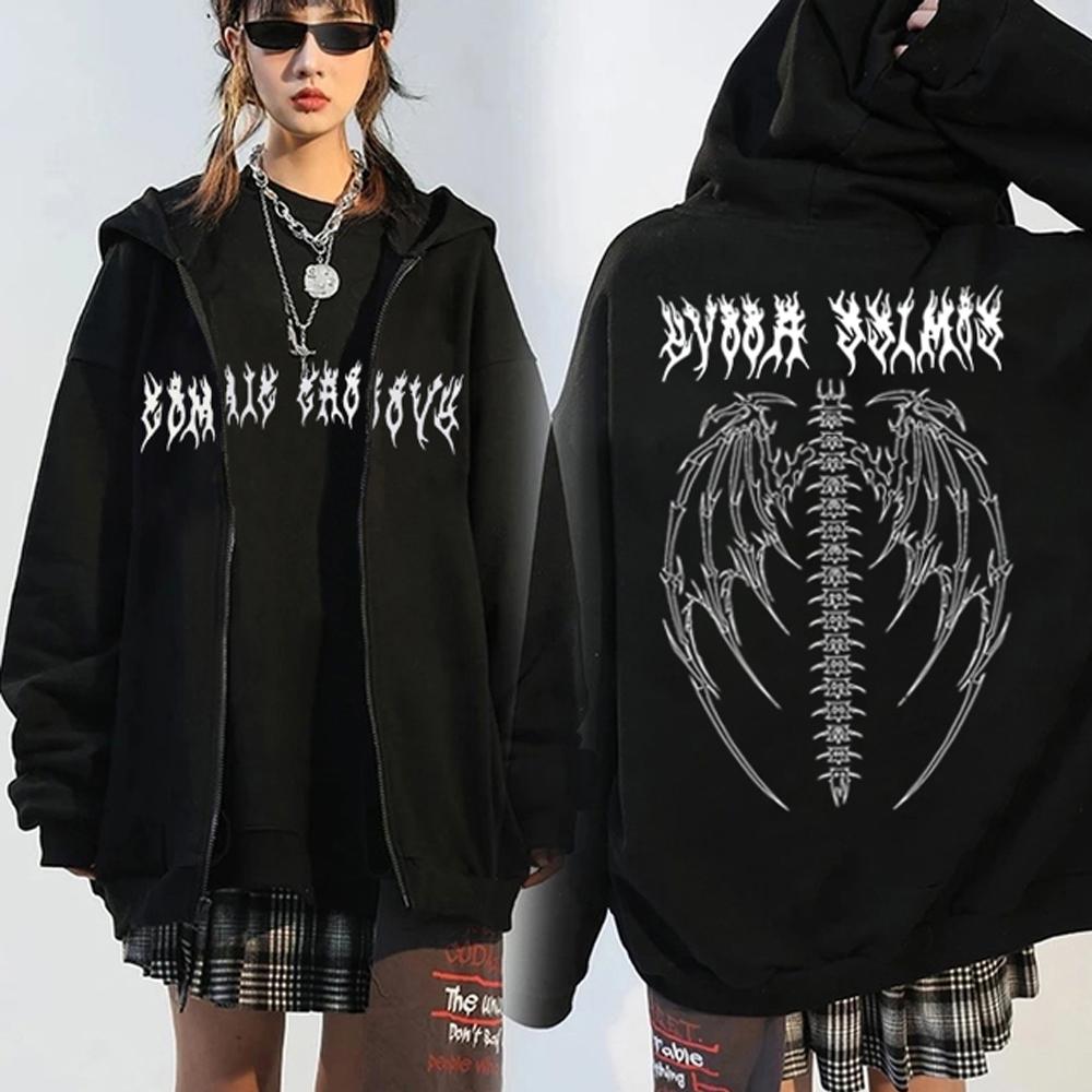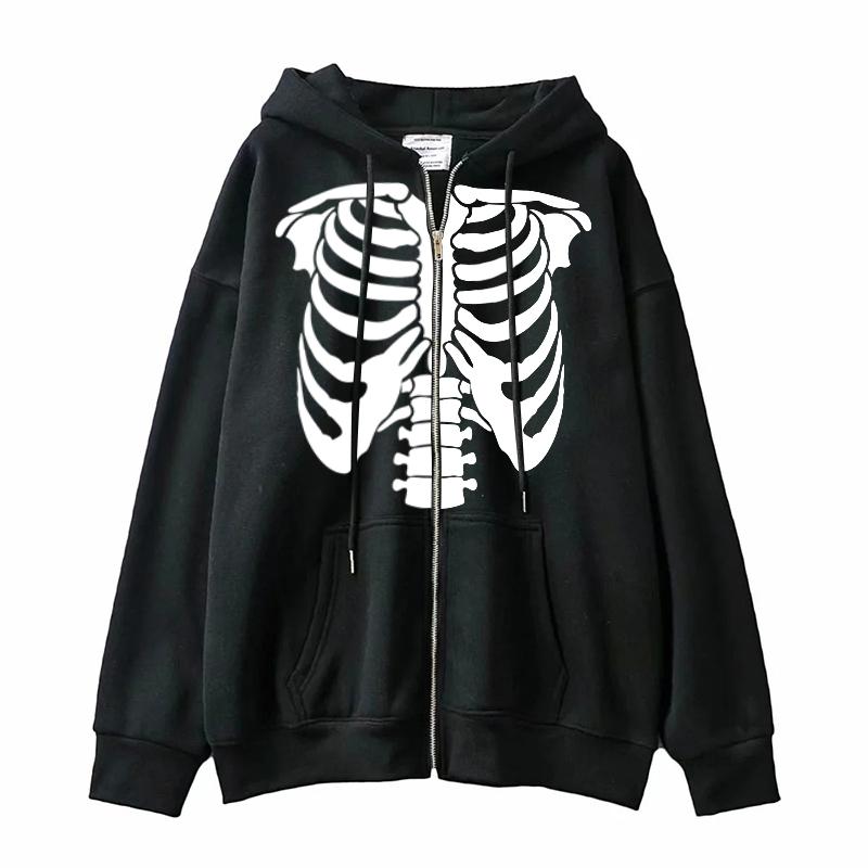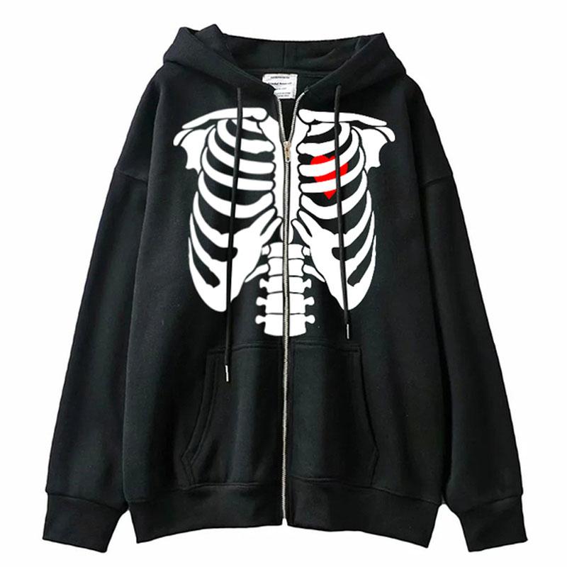 Готическая толстовка с длинным рукавом в стиле Харадзюку, женская толстовка со скелетом Y2K, эстетичная уличная одежда в стиле хип-хоп, винтажная одежда на молнии
