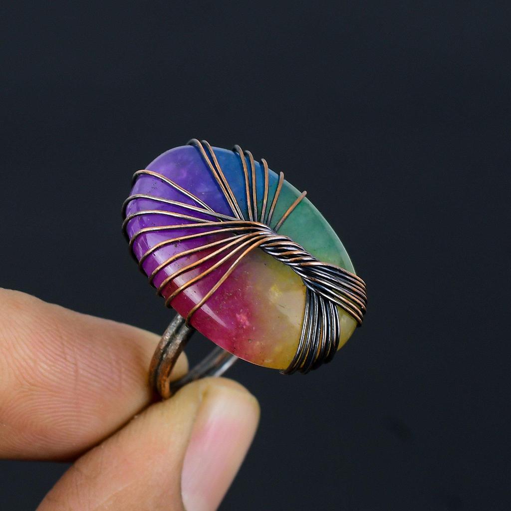 Древо Жизни Радуга Солнечный Кварц Драгоценный Камень Медная Проволока Обернутое Ювелирное Кольцо Ручной Работы Для Свадебного Подарка