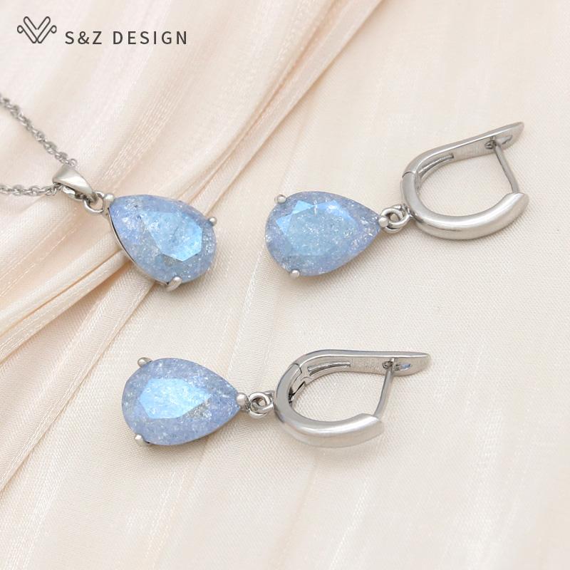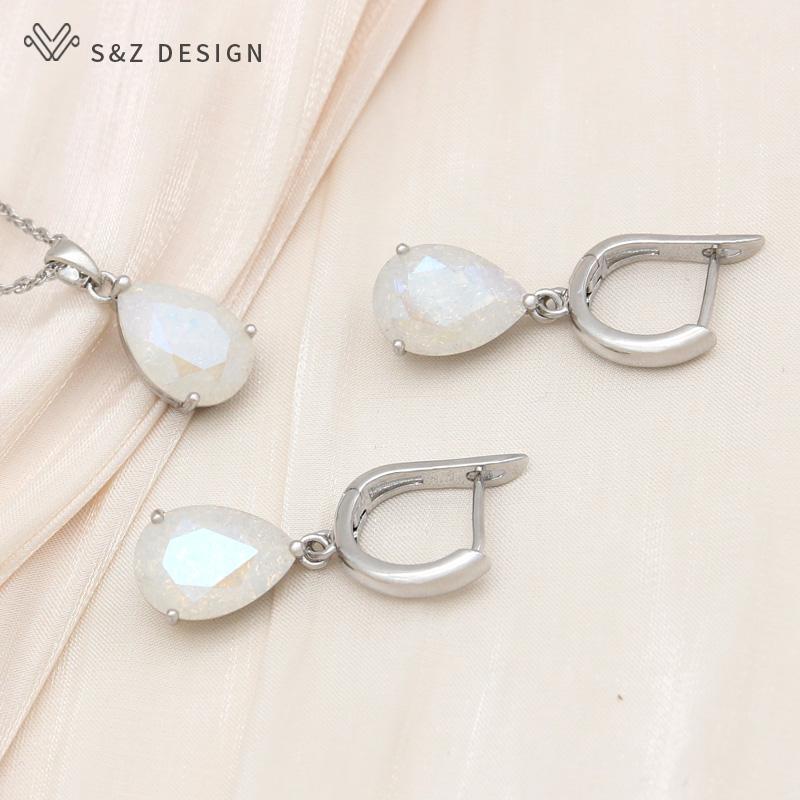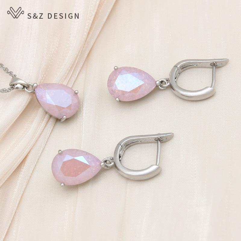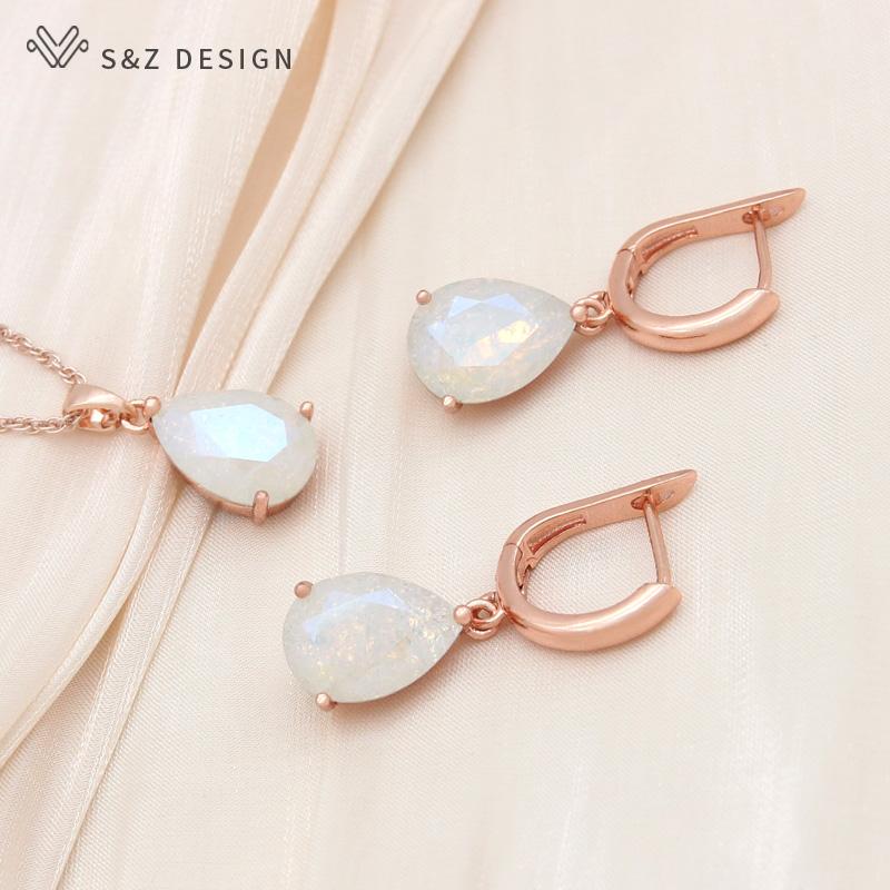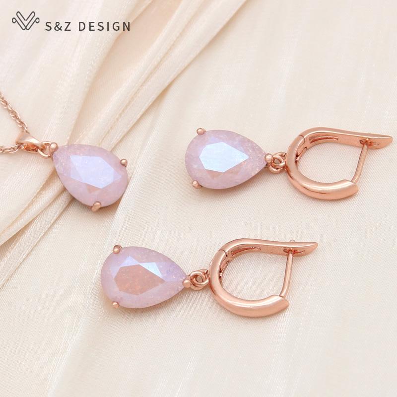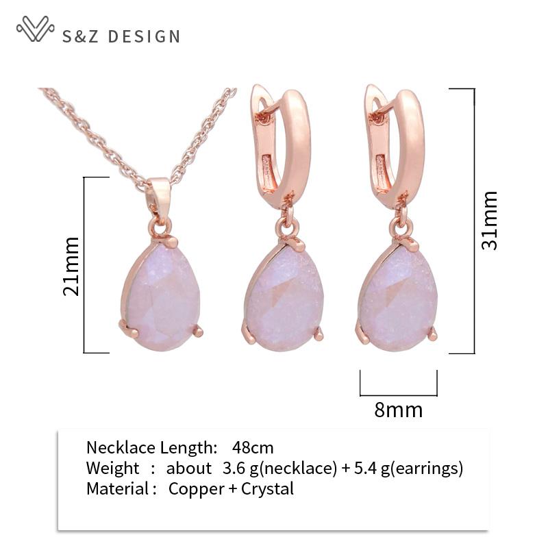 Модные комплекты украшений с каплями воды и кристаллами, розовое золото, висячие серьги для женщин, модное ожерелье с подвеской, подарок