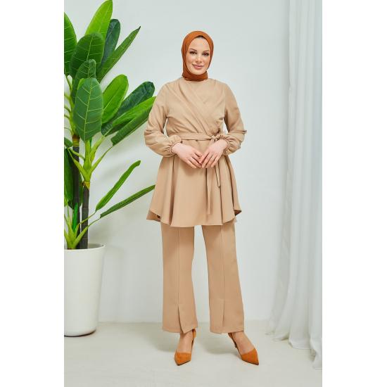 Туника имеет двубортный воротник и молнию сзади.. Есть переносной ремень. Брюки имеют разрезы и резинку на талии.. Костюм полностью изготовлен, вы можете выбрать свой размер.