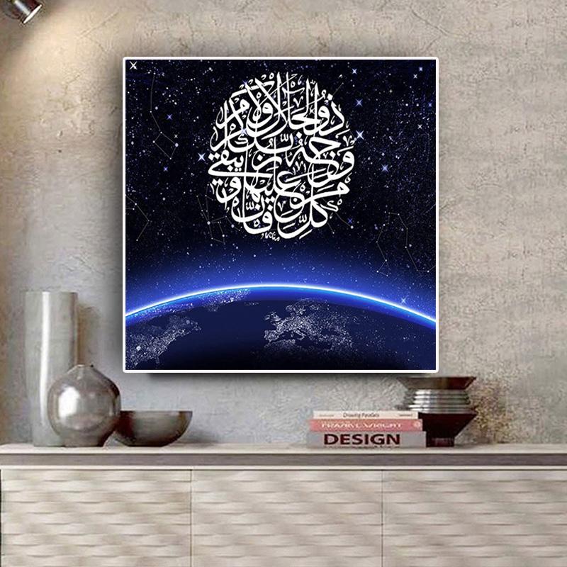 Коран, исламская каллиграфия, планета, черная картина маслом на холсте, художественные постеры и принты, мусульманская арабская настенная картина для гостиной — купить товар онлайн с бесплатной доставкой по всему миру!