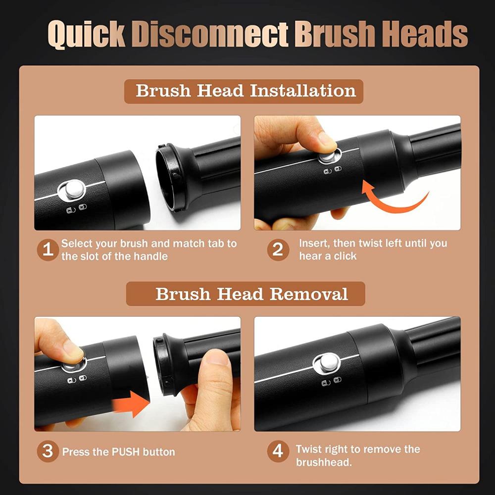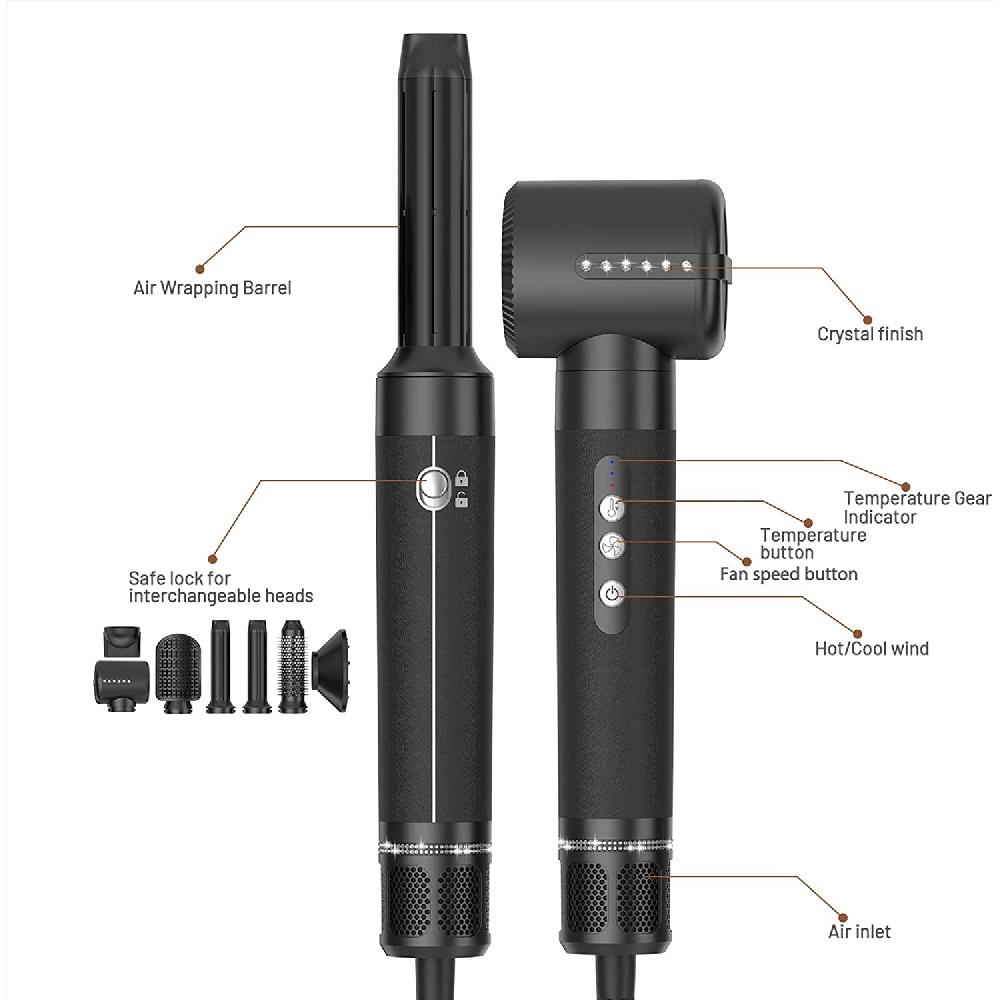【Высокоскоростной фен мощностью 1400 Вт】 Недавно улучшенный фен с бриллиантом оснащен высокоскоростным бесщеточным двигателем со скоростью вращения 110 000 об/мин, фен-диффузор обеспечивает быструю сушку при сохранении низкого нагрева, гарантируя, что ваши волосы останутся гладкими и объемными. Набор щеток для фена поставляется с 7 сменными насадками для расчесок для волос и представляет собой идеальное сочетание сушки, выпрямления, завивки, придания объема и массажа кожи головы. Наша щетка-фен с нейлоновой штифтом помогает придать волосам объем.