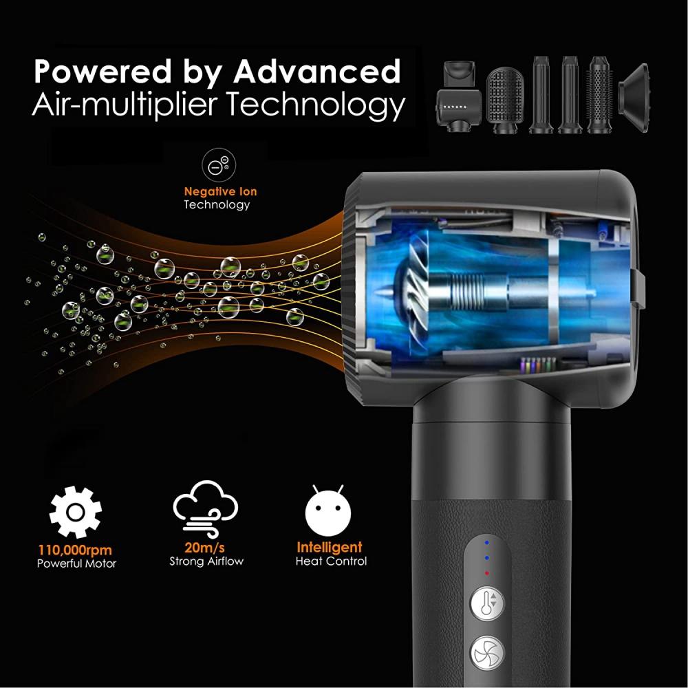 【3 настройки температуры и 3 настройки скорости ветра】 Фен прост в использовании, недавно улучшенный фен оснащен высокоскоростным бесщеточным двигателем со скоростью вращения 110 000 об/мин, сильный воздушный поток может высушить волосы за короткое время, удовлетворить все потребности в прическе ➤ 1: Низкая температура, для сухих волос / тонких волос, Подходит для летнего использования. ➤ 2: Средняя температура 75 °C, для полусухих волос / нормальных волос, Подходит для укладки. ➤ 3: Высокая температура 130 ° C, для влажных волос / густых и вьющихся волос, Подходит для зимнего использования, быстро сохнет волосы.
