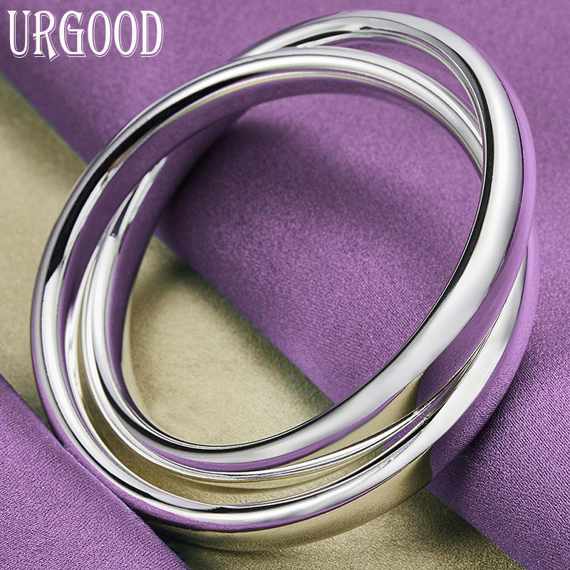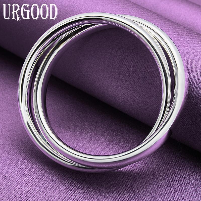 Браслет из стерлингового серебра 925 пробы с гладким двойным кольцом, модные ювелирные изделия