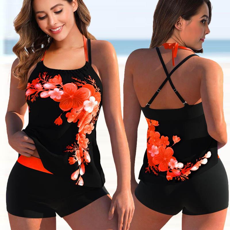 2023 женские новые купальники-танкини с цветочным принтом, большие размеры, женский купальник, женский купальный костюм из двух предметов, пляжная одежда для плавания