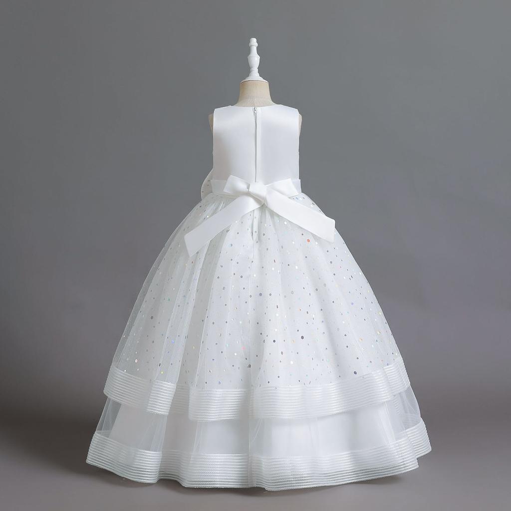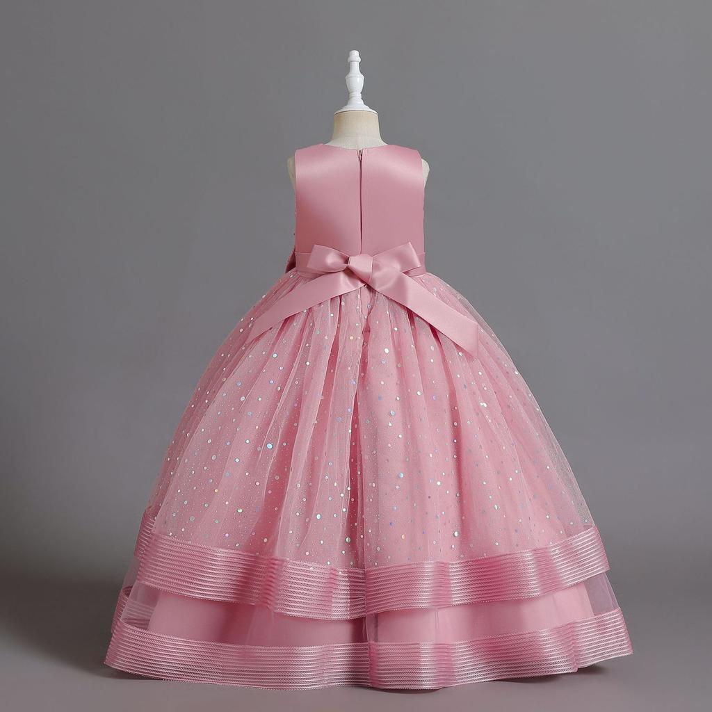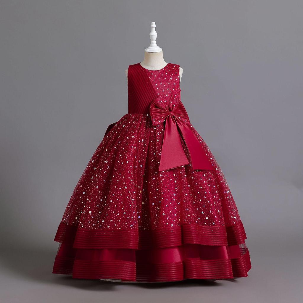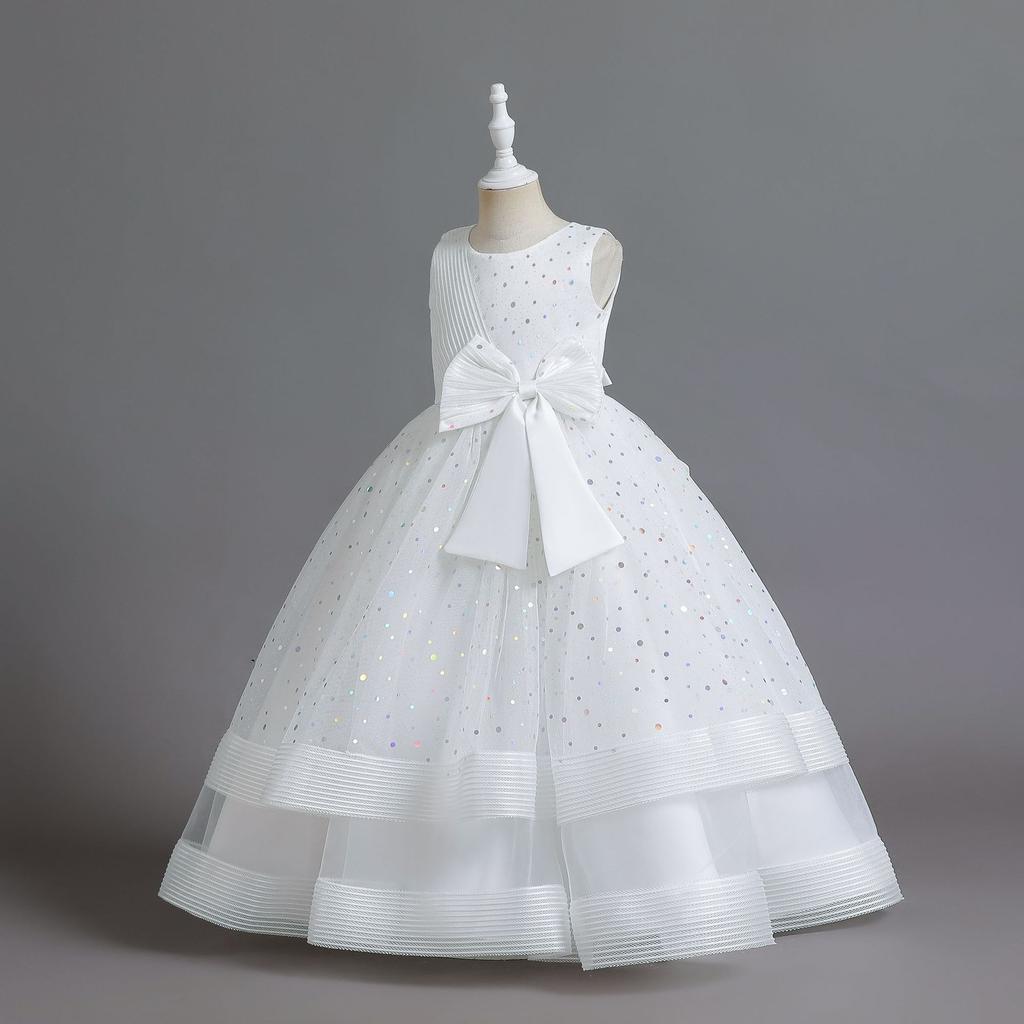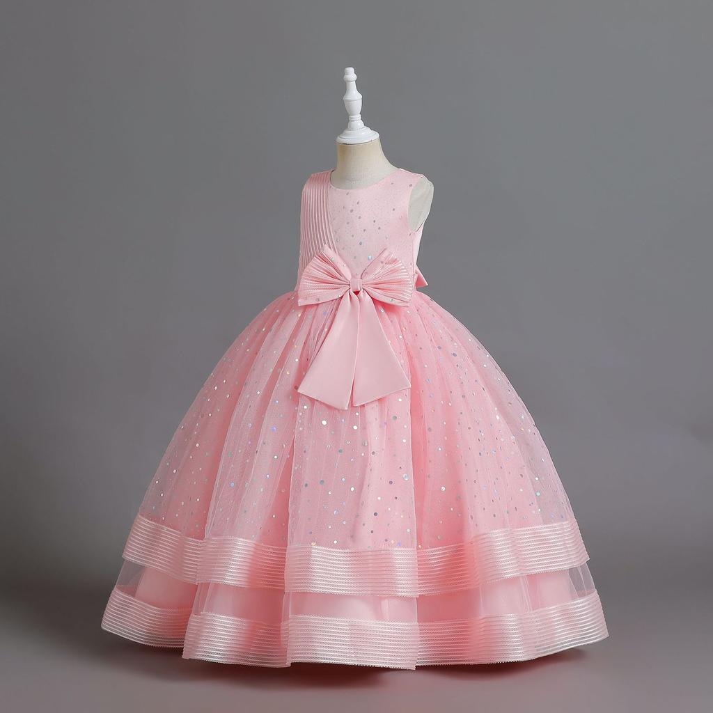 Элегантное детское вечернее платье с круглым вырезом без рукавов с бантом и блестками, платье с цветочным узором для девочек на свадьбу, день рождения