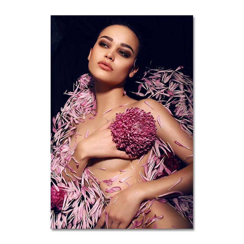Современная обнаженная женщина с лепестками, холст, живопись, постеры и принты, скандинавская настенная художественная картина для гостиной, домашний декор