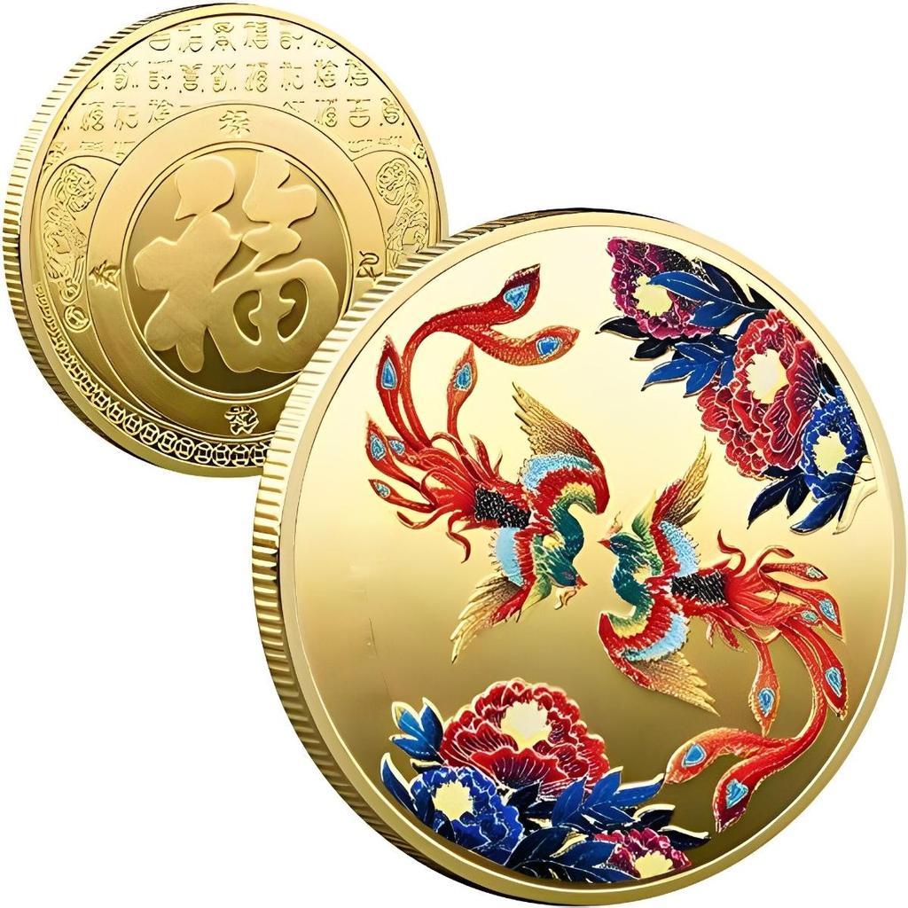 Удачи вам в китайском стиле Луань Фэн Чэнсян Феникс памятная медаль FU Золотая монета Серебряная монета Металлический значок Ремесла