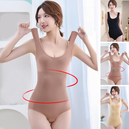 Бесшовное женское боди без рукавов с пряжкой и U-образным вырезом, сексуальное однотонное корректирующее белье без рукавов