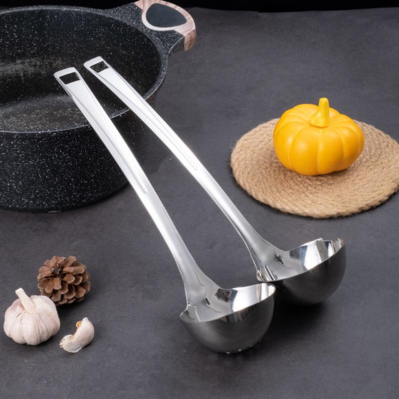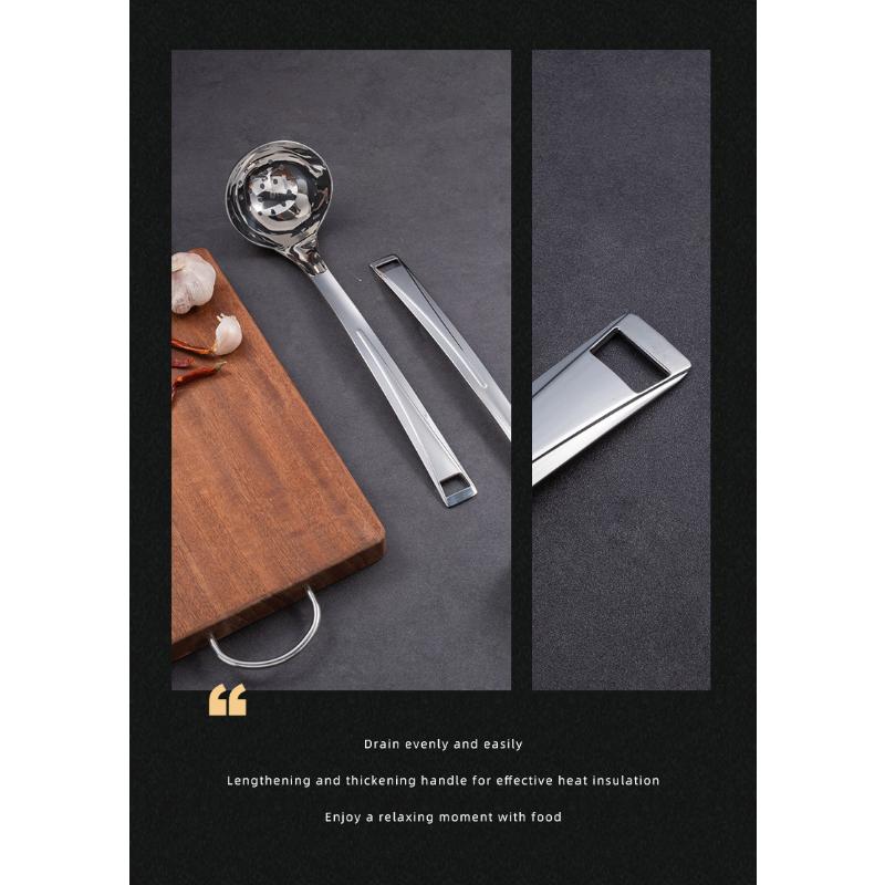 HANYANG 316 Ложка для отделения масла из нержавеющей стали Бытовая горячая кастрюля Суповая раковина Воронка для супа Длинная ручка Ложка для супа Утолщение Углубление Маленькая воронка