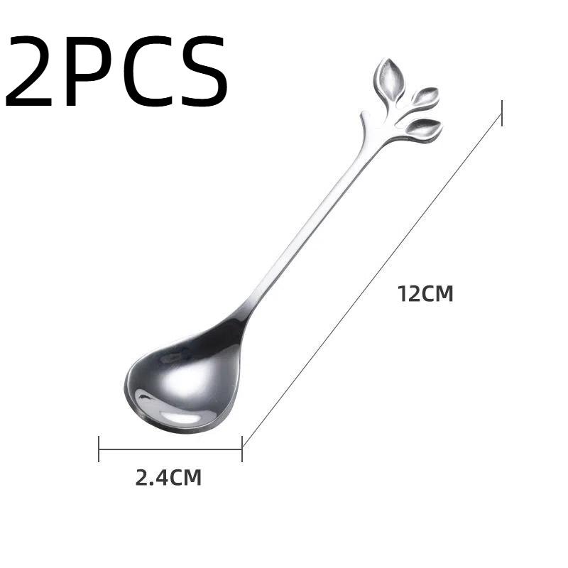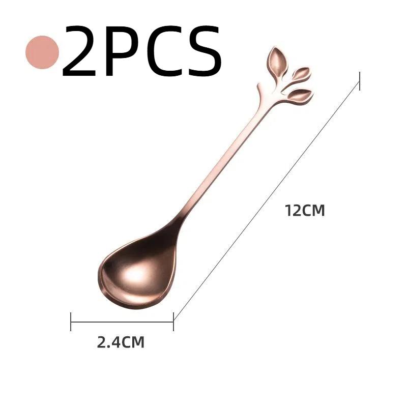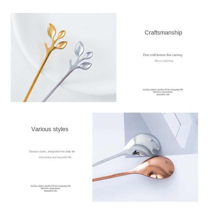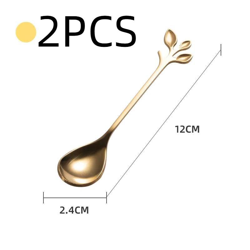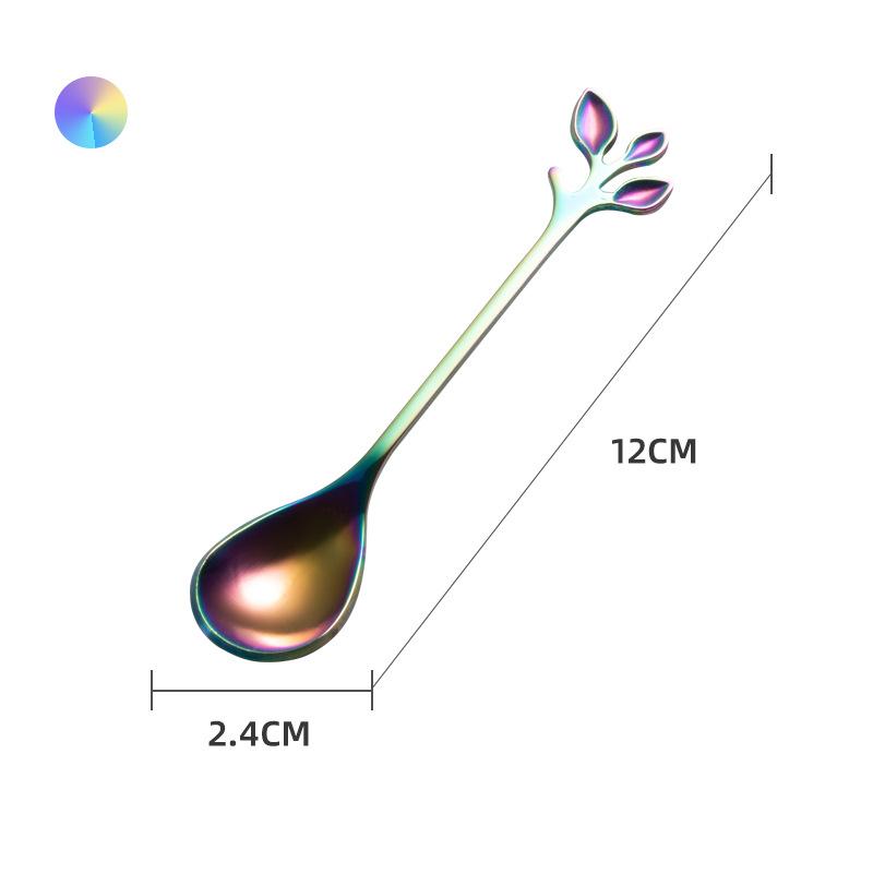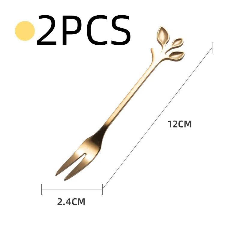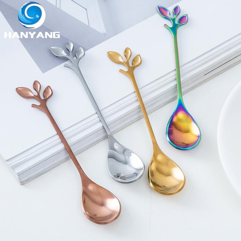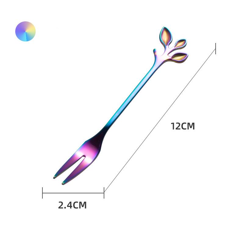 HANYANG Вилка для фруктов из нержавеющей стали с золотыми листьями Креативная вилка из нержавеющей стали Ложка Красочная ложка для перемешивания кофе