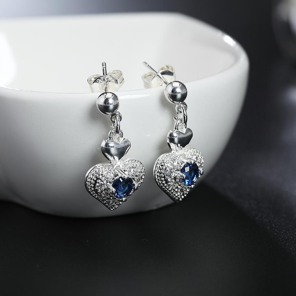 Новые серьги из стерлингового серебра 925 пробы для элегантных женщин, ювелирные изделия, универсальные синие цирконовые серьги в форме сердца, подарки на День матери