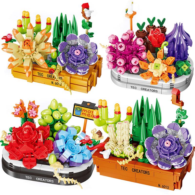 MOC креативные идеи, букет цветов, бонсай, суккуленты, строительные блоки, кирпичи, детские строительные игрушки для друзей, подарки для девочек