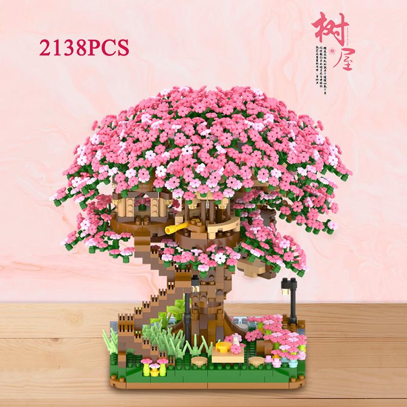 2138 шт., модель розового цвета вишни, строительный блок, миниатюрный дом на вишневом дереве, сборный кирпич, детский рождественский подарок, игрушка для девочек