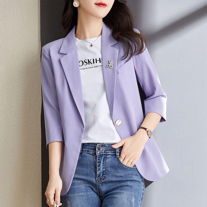 Модный и легкий женский фиолетовый пиджак с рукавами 3/4 — купить товар онлайн с бесплатной доставкой по всему миру!
