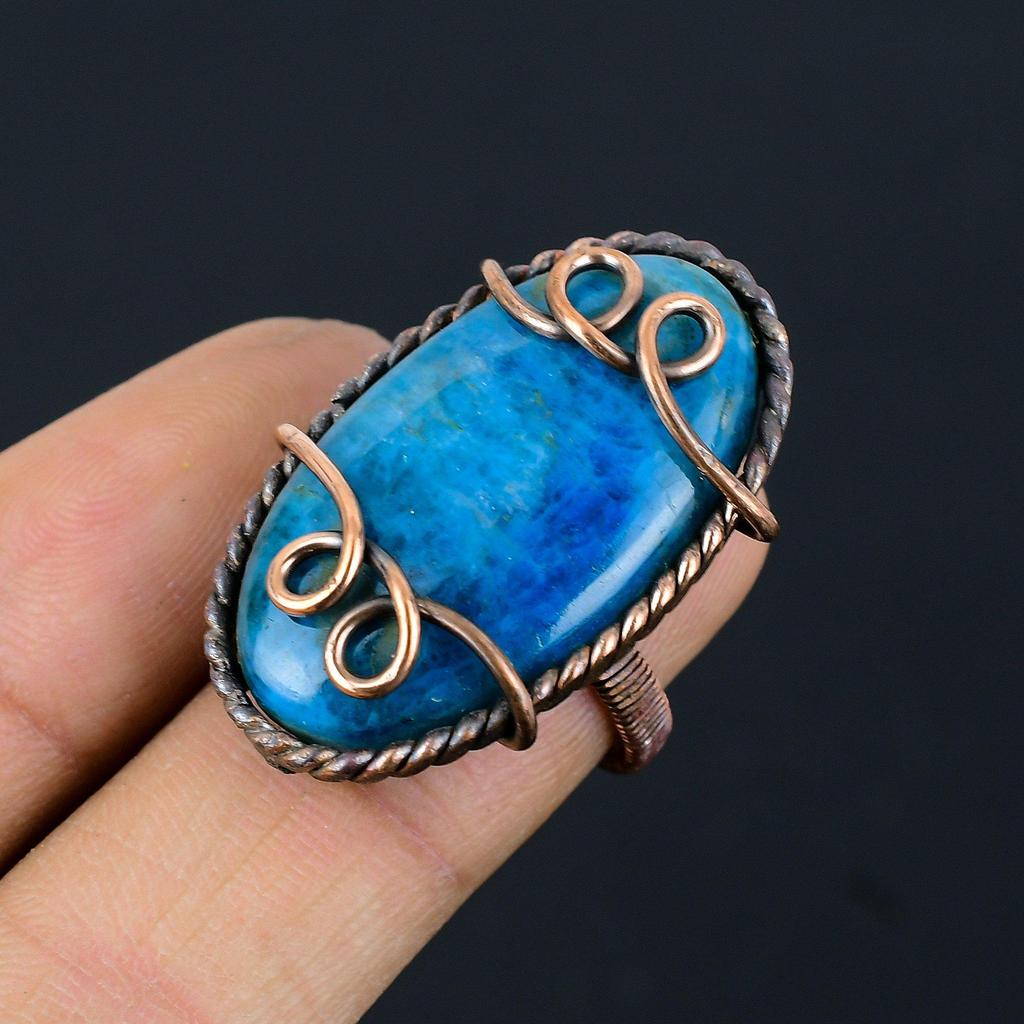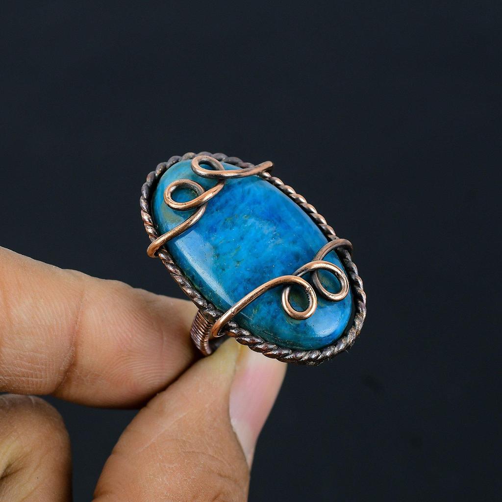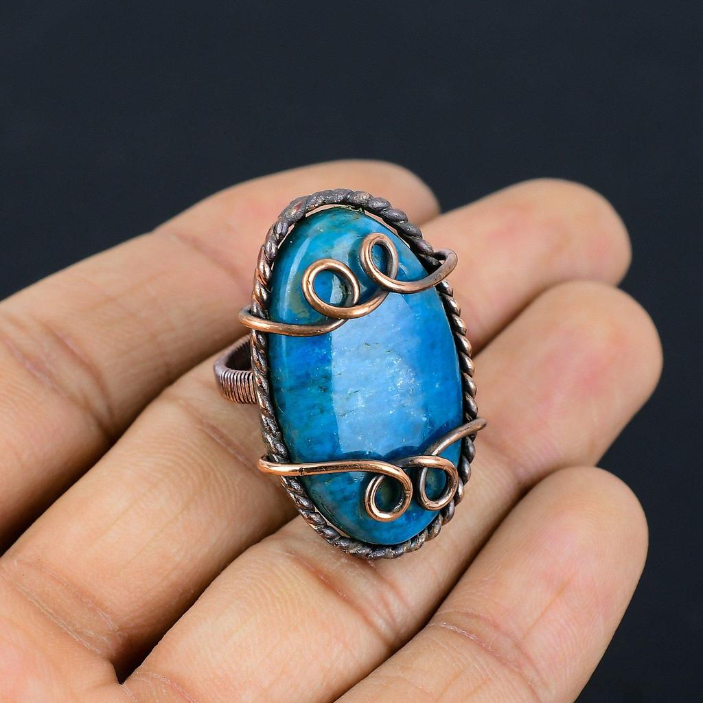 Неоново-синий апатит, драгоценный камень, медная проволока, обернутое ювелирное кольцо ручной работы для подарка, все размеры