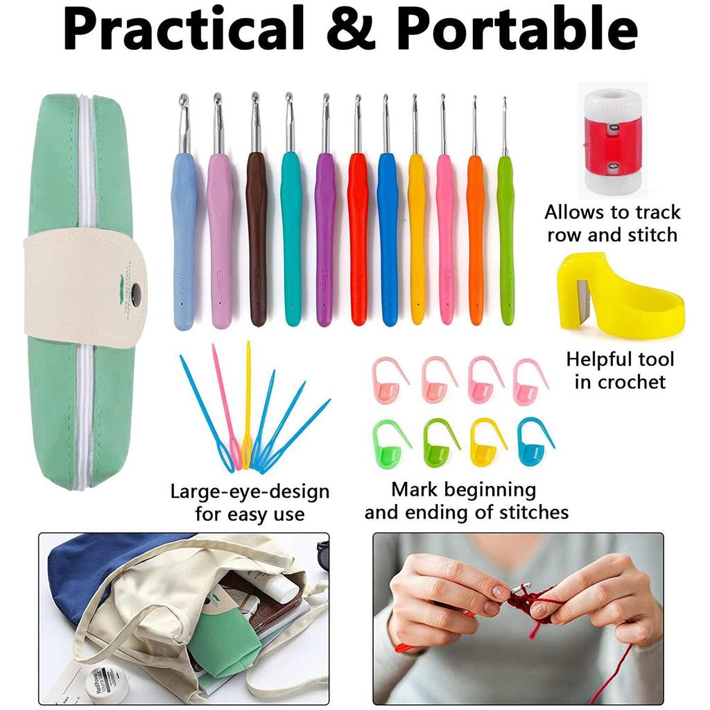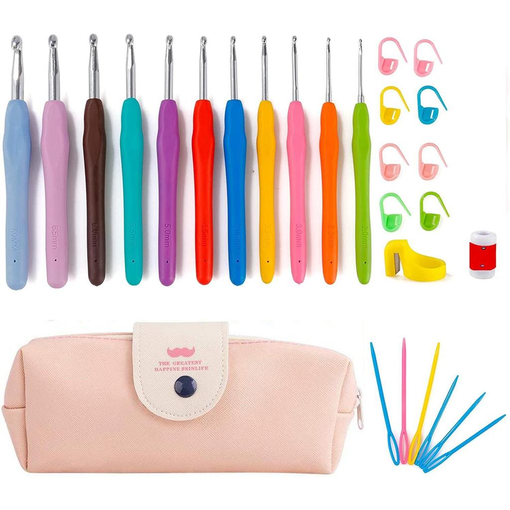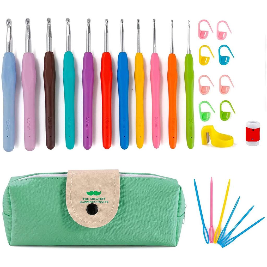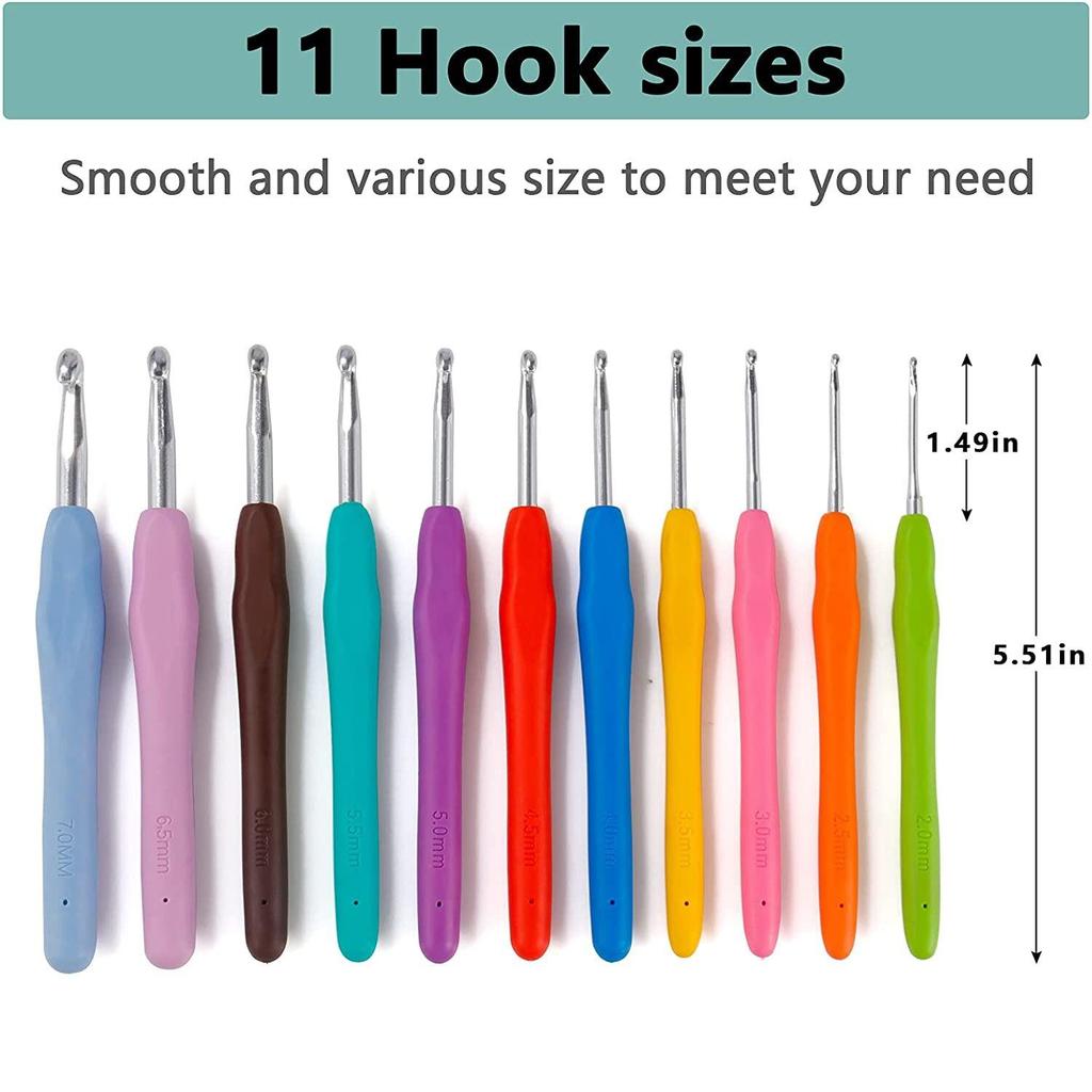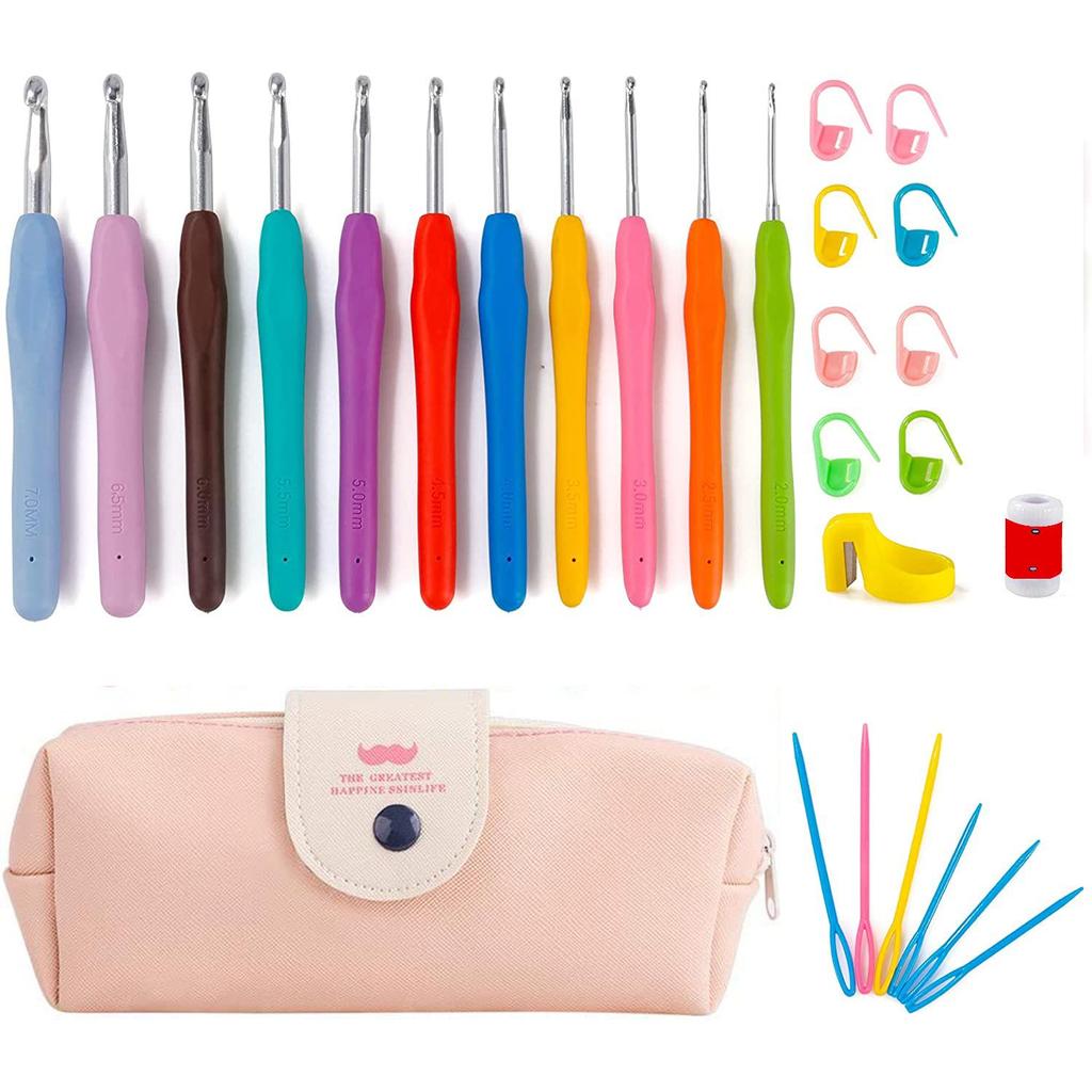 Набор крючков для вязания крючком 11 размеров, 2 мм-8 мм, эргономичная мягкая ручка, спицы для вязания крючком, набор вязальных спиц с сумкой