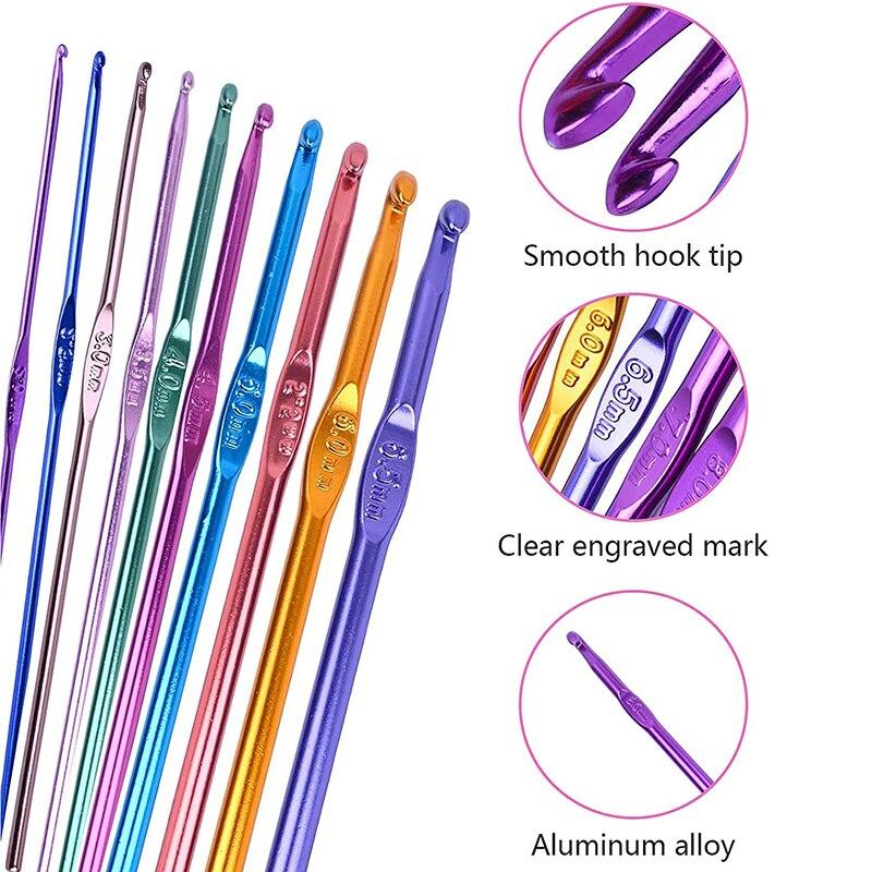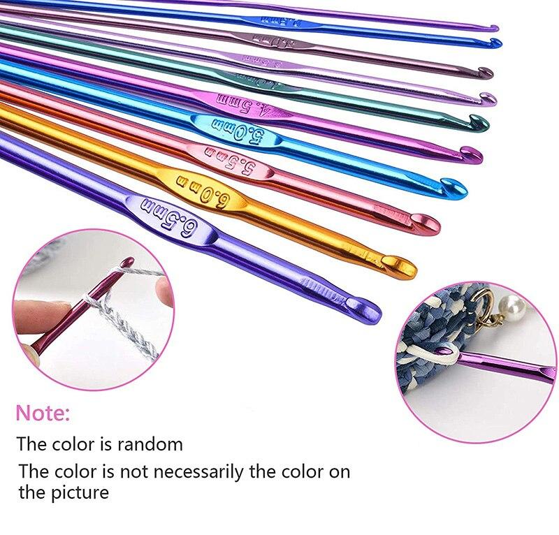 22 шт./компл., смешанные красочные крючки с алюминиевой ручкой, эргономичные DIY ремесла, вязальные спицы, набор пряжи 0,6 ~ 6,5 мм