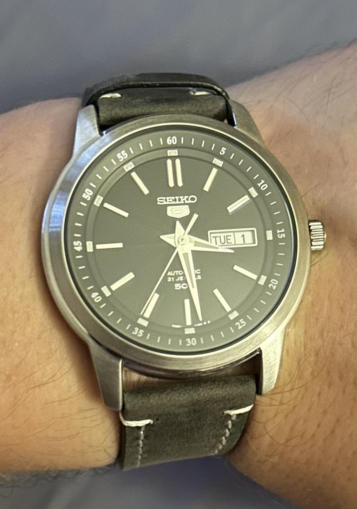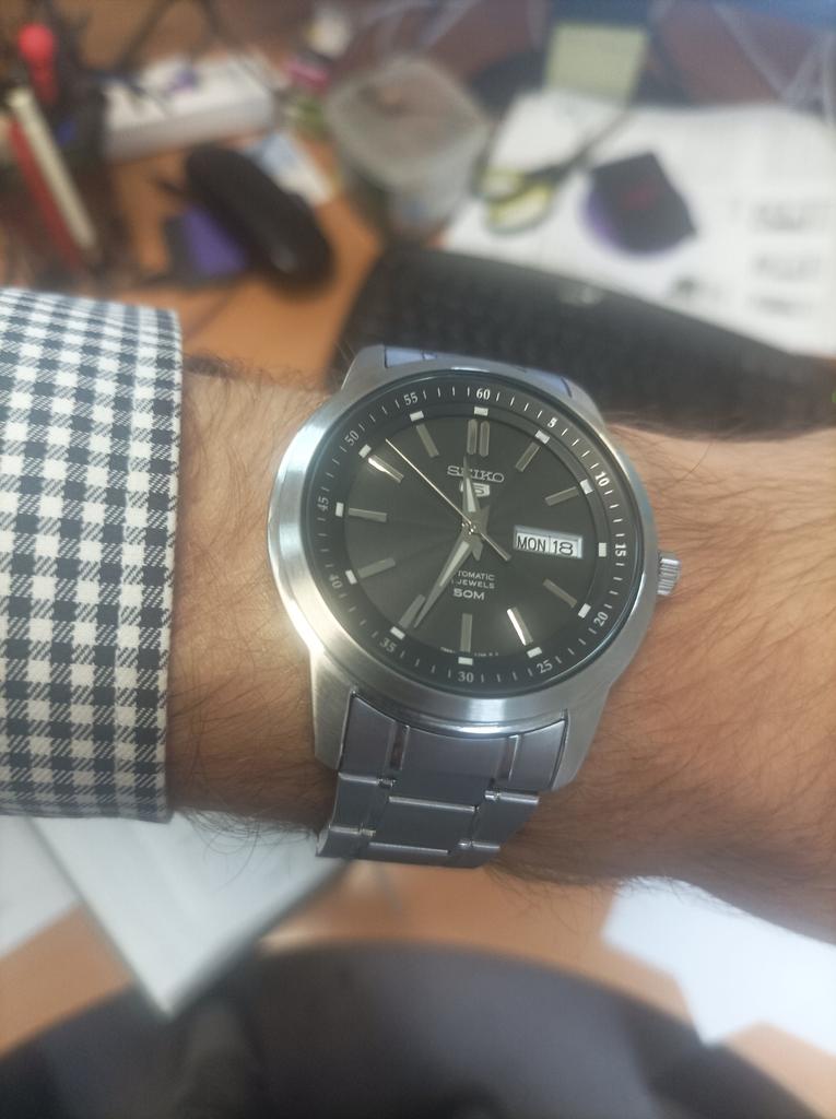 Обычные хорошие дешевые часы. Идут точно, выглядят просто, на руке удобны, каких-то усложнений (даже стоп-секунды) нет, браслет штамповка гремящая. Но может возникнуть вопрос: почему 5 звёзд? Ну так цене своей они соответствуют. Большего я и не ожидал. А вообще считаю, что такие часы в сете у каждого должны быть. Хотя бы для того, чтобы увидеть разницу между часами за $1000+ и этими со скидкой за ₽13500. Сравнить как переливается на солнце циферблат (у этих часов никак), сколько внимания отведено мелким деталям (у этих часов нисколько), и т. п. и купить Seiko Presage за 35-50 тысяч рублей или Citizen Tsuyosa за примерно столько же. Стоят они своих денег? Вполне. Хорошие ли это часы? В принципе, да. Но они обычные: ни стиля, ни смысла. Просто добротные дешевые часы. Однако уж лучше такие купить, чем какое-то ноунейм-говно, косящее под Ролекс. По качеству претензий же никаких: Seiko в любом ценовом диапазоне сделаны качественно, надёжно и аккуратно, хоть и сборка китайская. Ну и литой браслет или кожаный ремень их заметно улучшит. Будут смотреться минимум в два раза симпатичнее. Но если вы не притязательны, то окей, можно брать. Уверен, прослужат долго верой и правдой. UPD: На кожаном ремне они и правда смотрятся значительно лучше. Если покупаете эти часы, сразу возьмите кожаный ремень здесь же на Джуме тыщи за две. Крепление к часам 22 мм. Поверьте, вам понравится.