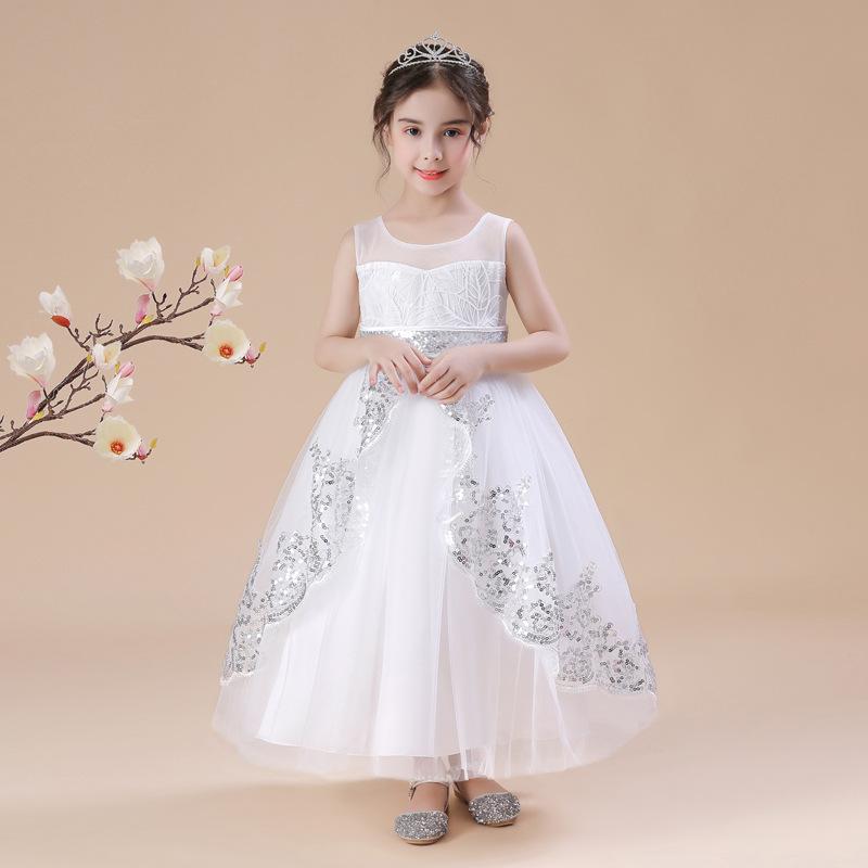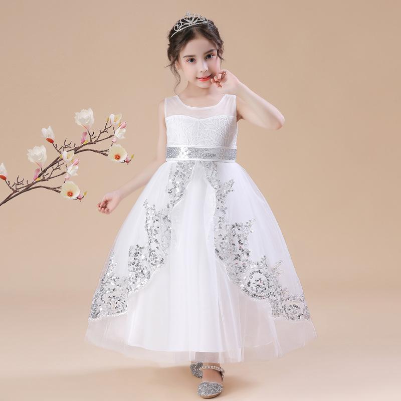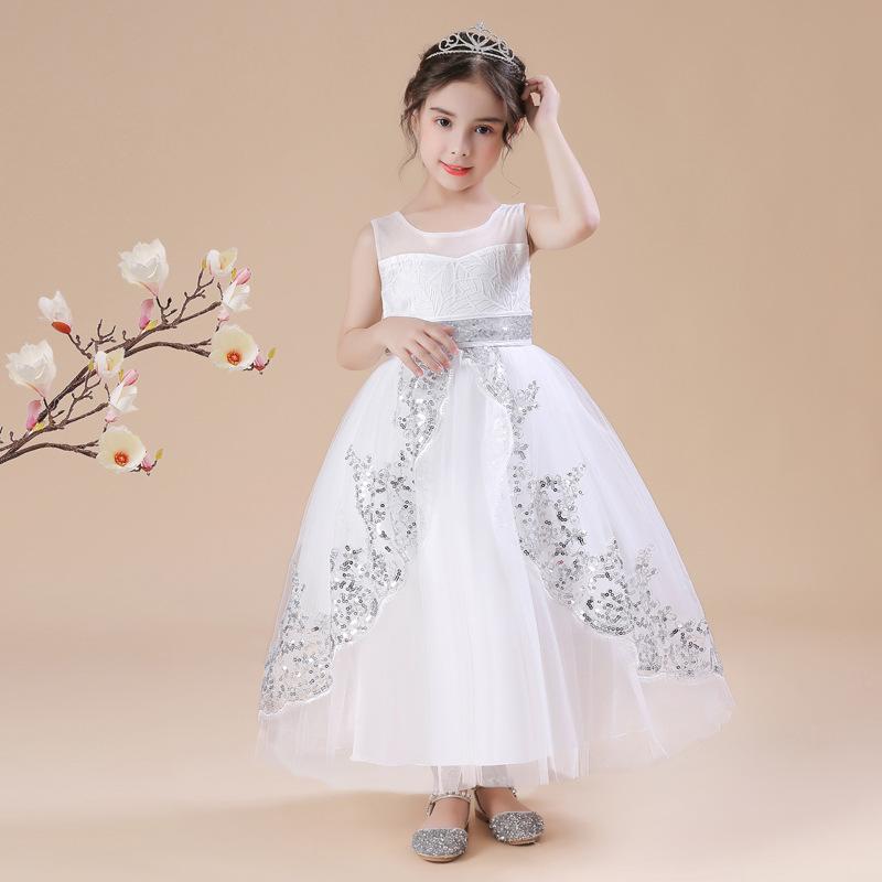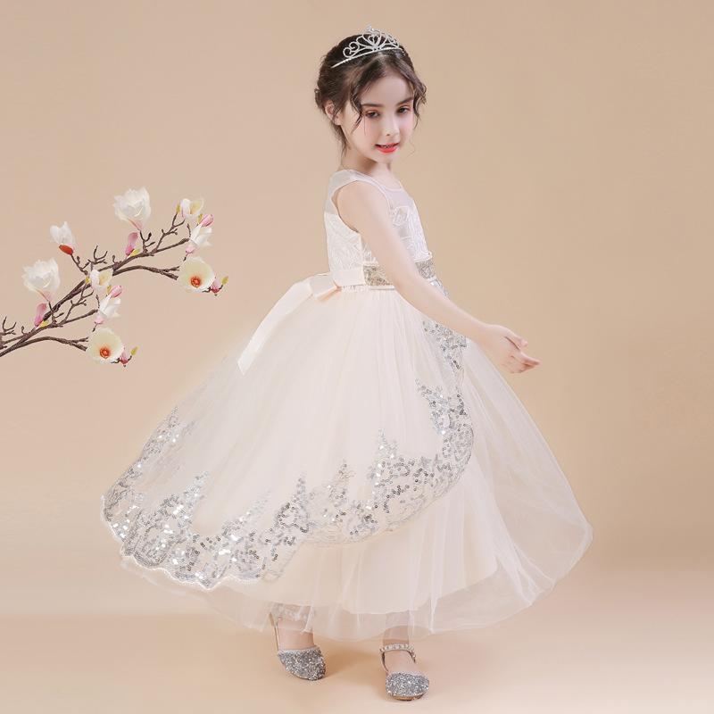 Платье принцессы с блестками, свадебное платье, длинное детское платье с пышным цветочным узором для девочек