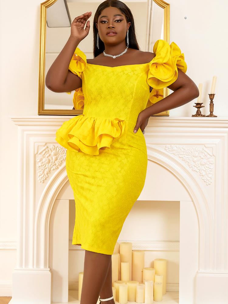AOMEI Желтые кружевные платья Топы-трубы с оборками Сексуальное облегающее платье с высокой талией и баской до середины икры Торжественное мероприятие для празднования дня рождения Свадебные платья для гостей для женщин