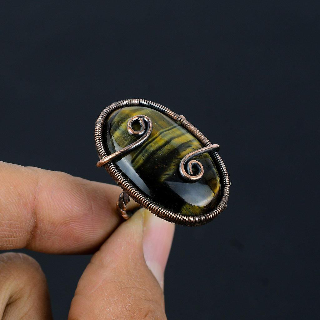 Ювелирное кольцо ручной работы с медной проволокой из драгоценного камня тигрового глаза для нее всех размеров — купить товар онлайн с бесплатной доставкой по всему миру!