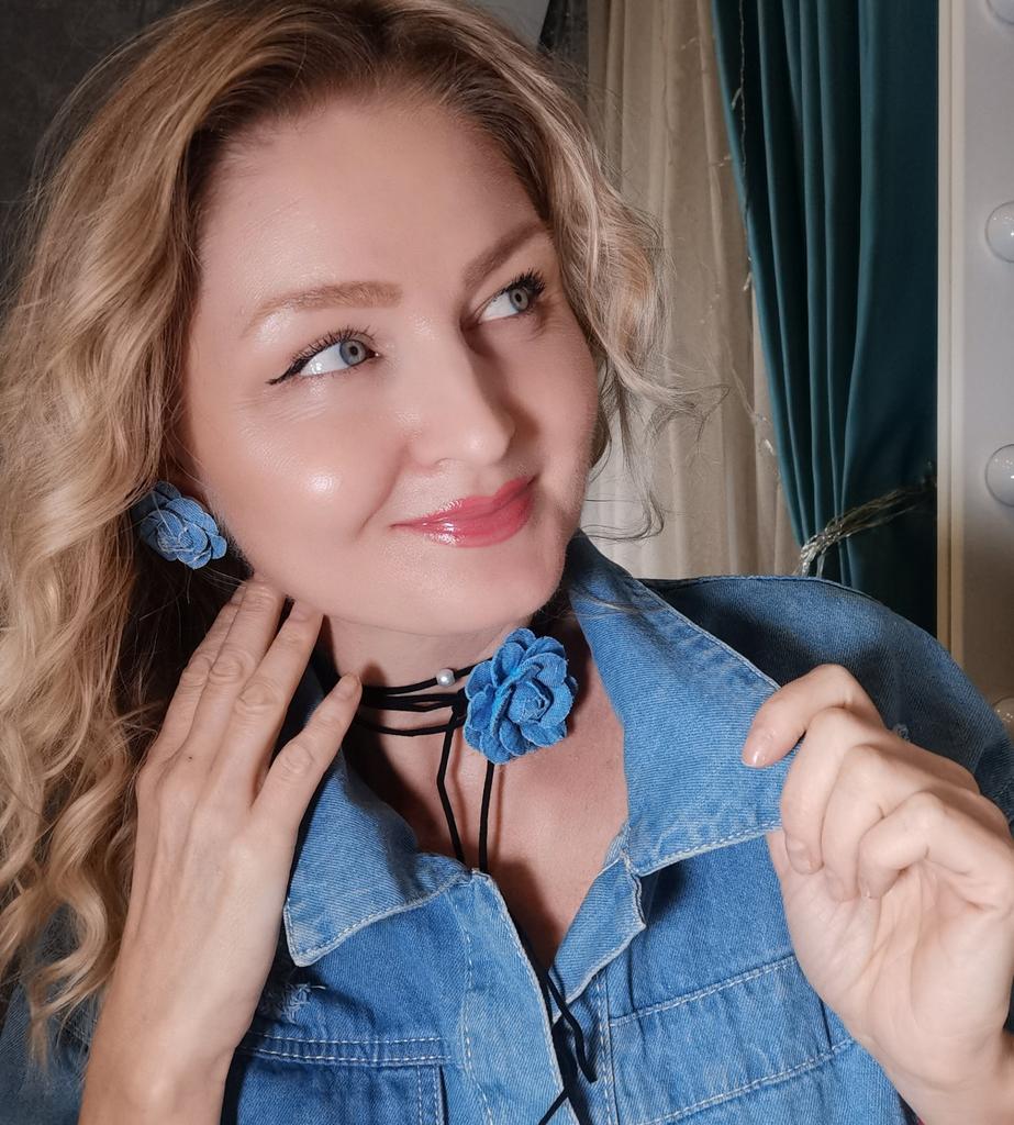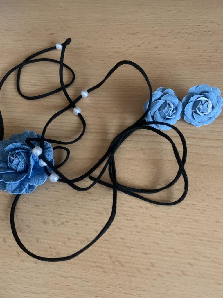 Невероятно красивый КОМЛЕКТ БИЖУТЕРИИ ДЖИНСОВЫЕ КАМЕЛИИ СЕРЬГИ - ГВОЗДИКИ 💙 Размер - 4см x 4см 💙 Объёмные, заметные, лёгкие!! 💙 Гвоздики защищены дополнительным материалом, чтобы при транспортировке НЕ погнулись! Что касается заглушек, предлагаю заменить сразу на обычные силиконовые, т.к. "родные" не держат серьги от слова совсем, цветы "провисают" и вид сразу портится! 💙 Выполнены аккуратно! ЧОКЕР 💙 Объёмный, лёгкий, красивый цветок в центре Размер - 5см x 5см 💙 Шнурок достаточно длинный, можно обмотать вокруг шеи 2 раза. Украшен 3-мя бусинами под "жемчуг" с обеих сторон 💙 Также можно использовать не только на шее, но и на руке, в качестве браслета! А возможно и вместо пояса - это уже кому как нравится😁 💙 Набор шикарный, к покупке однозначно рекомендую 💯