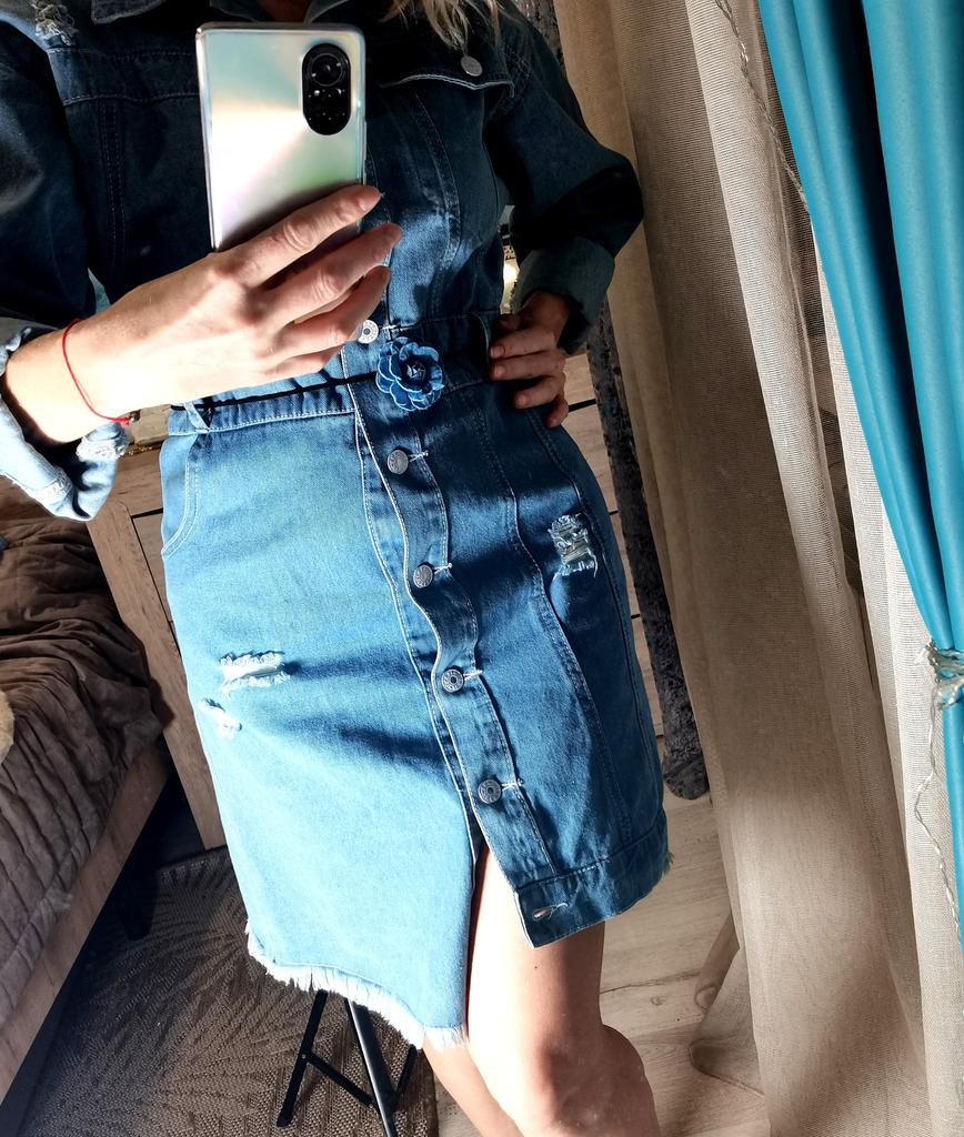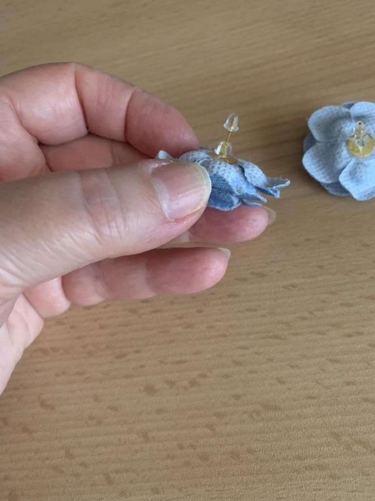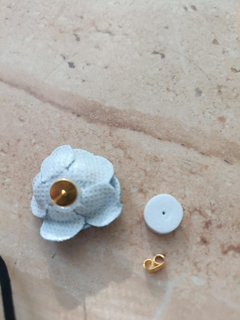 Комплект с джинсовыми камелиями. Цветочки выглядят очень прилично, несмотря на небольшую стоимость. А продавец-молодец позаботился, чтобы не погнулись гвоздики у серёжек, и надел на них специальные шайбочки из вспененного материала. Колье я собираюсь носить не как чокер, а как длинное украшение. Серьги сначала показались не очень, но я расправила лепестки, и в итоге они отлично смотрятся, и вообще, комплект миленький👍