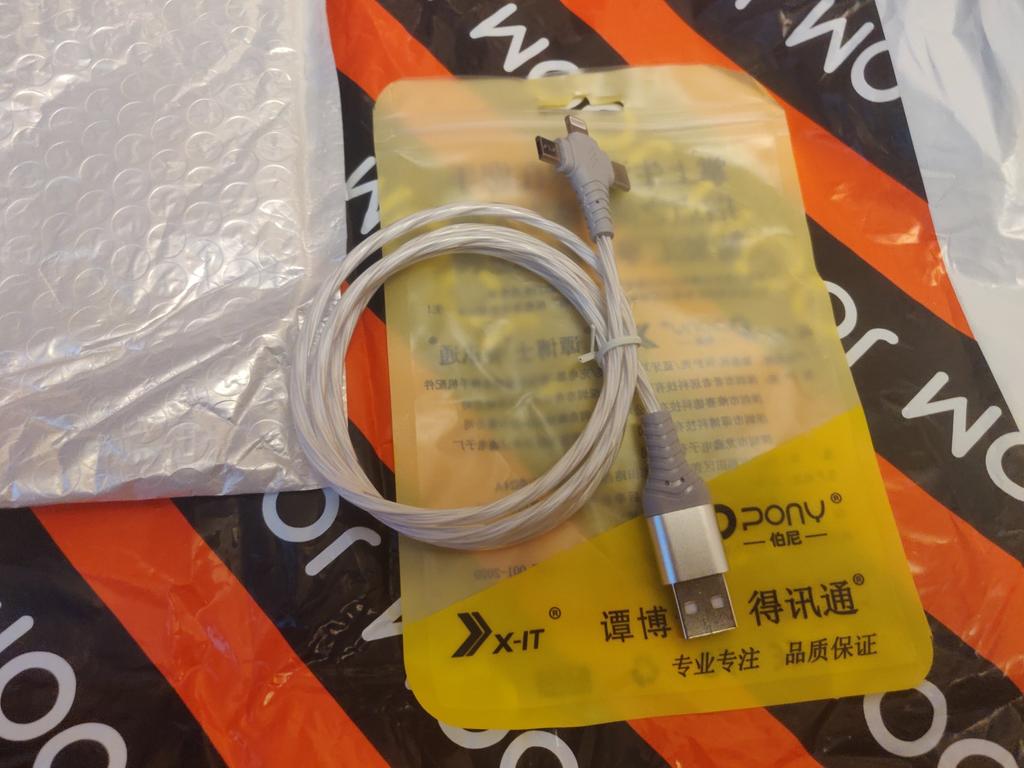 Заказ пришёл почти за 20 дней. Проводок выглядит качественно, правда тройничок мелким кажется. Я и забыл что светящийся, прям гирлянда, прада бешеная немного. Зарядка не самая быстрая, но 2 Вт / 600 mA выдаёт на телефоне. Таскать с собой для разных устройств удобно думаю. Правда лайтнинг мне не нужен, но может кому-то понадобится.