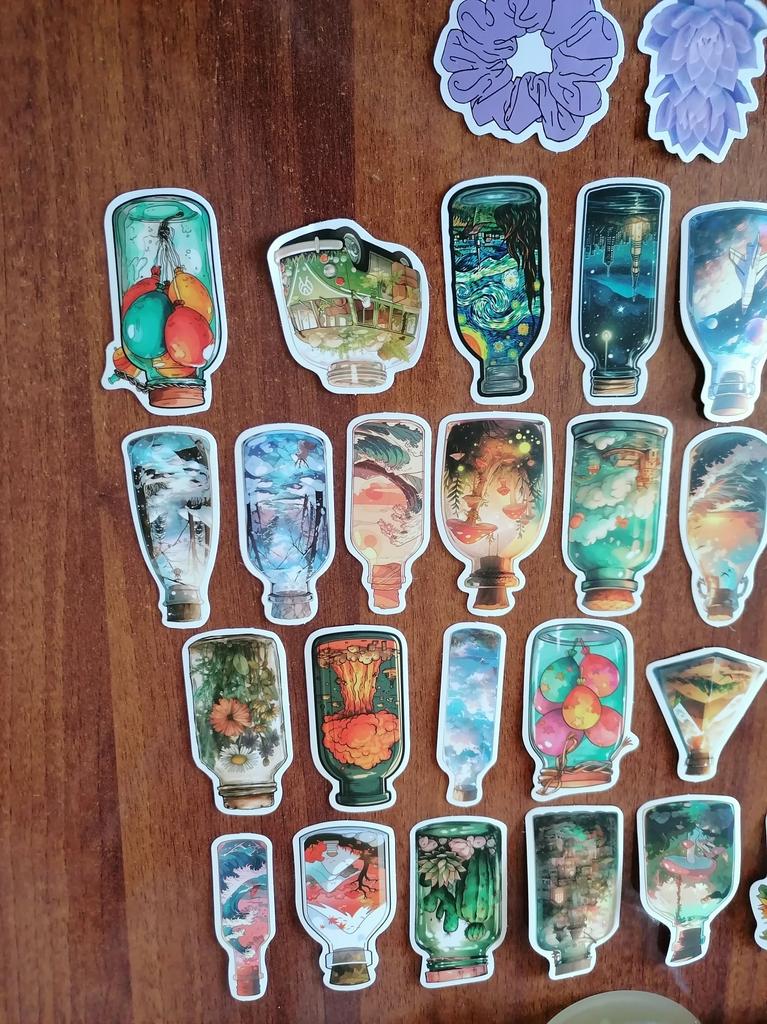 Заказала товар 24.07.2023 - прибыл в Тюмень 17.08.2023. Опповестили через приложение. Отслеживание было на всем пути. Упаковка не вскрытая. Заказала наклейки в виде ежей. Картинки яркие и пропечатаны, замятых краёв нет. Без защитной плёнки. В подарок прислали наклейку о. Резинки для волос и цветка