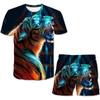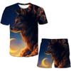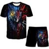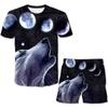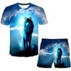 Летние детские футболки с волком, шорты, костюмы, топы с короткими рукавами с героями мультфильмов для мальчиков и девочек + брюки с эластичной резинкой на талии, комплект одежды из 2 предметов