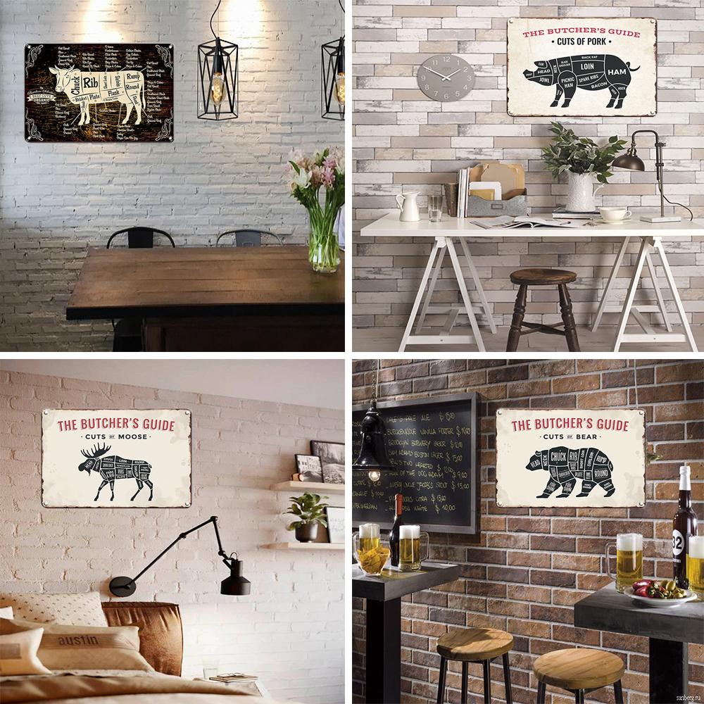 INEED антикварный «Руководство мясника», винтажная металлическая вывеска с животными, кухонный декор для рынка, жестяная вывеска, художественный постер, металлическая пластина, Настенный декор