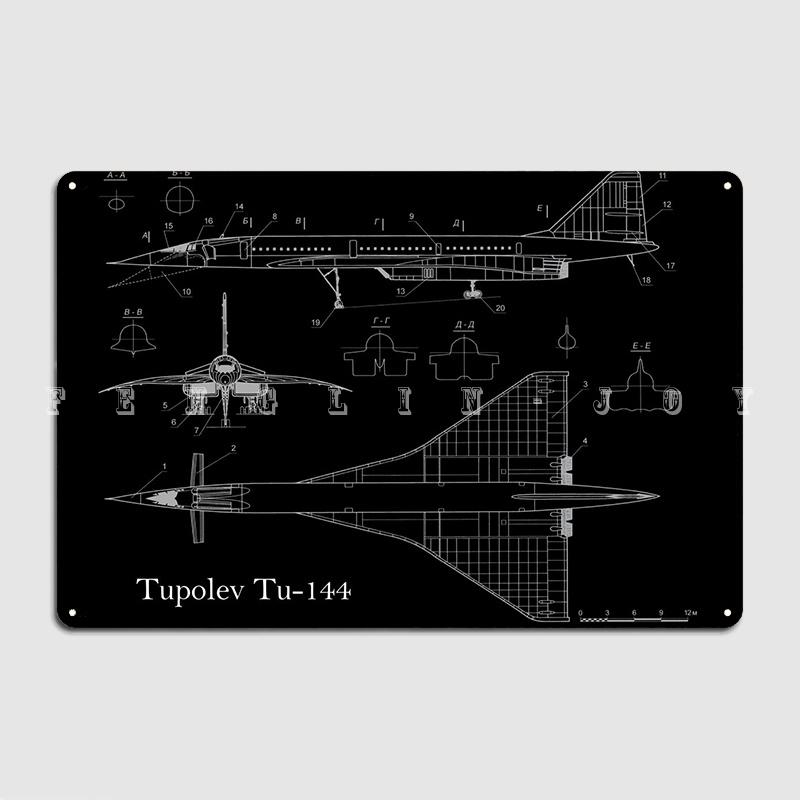 Туполев Ту144 чертеж металлический знак кино гостиная пещера паб печать украшение для гаража жестяная вывеска плакат