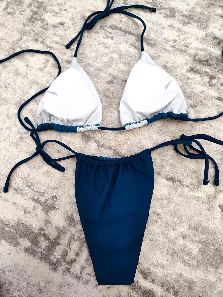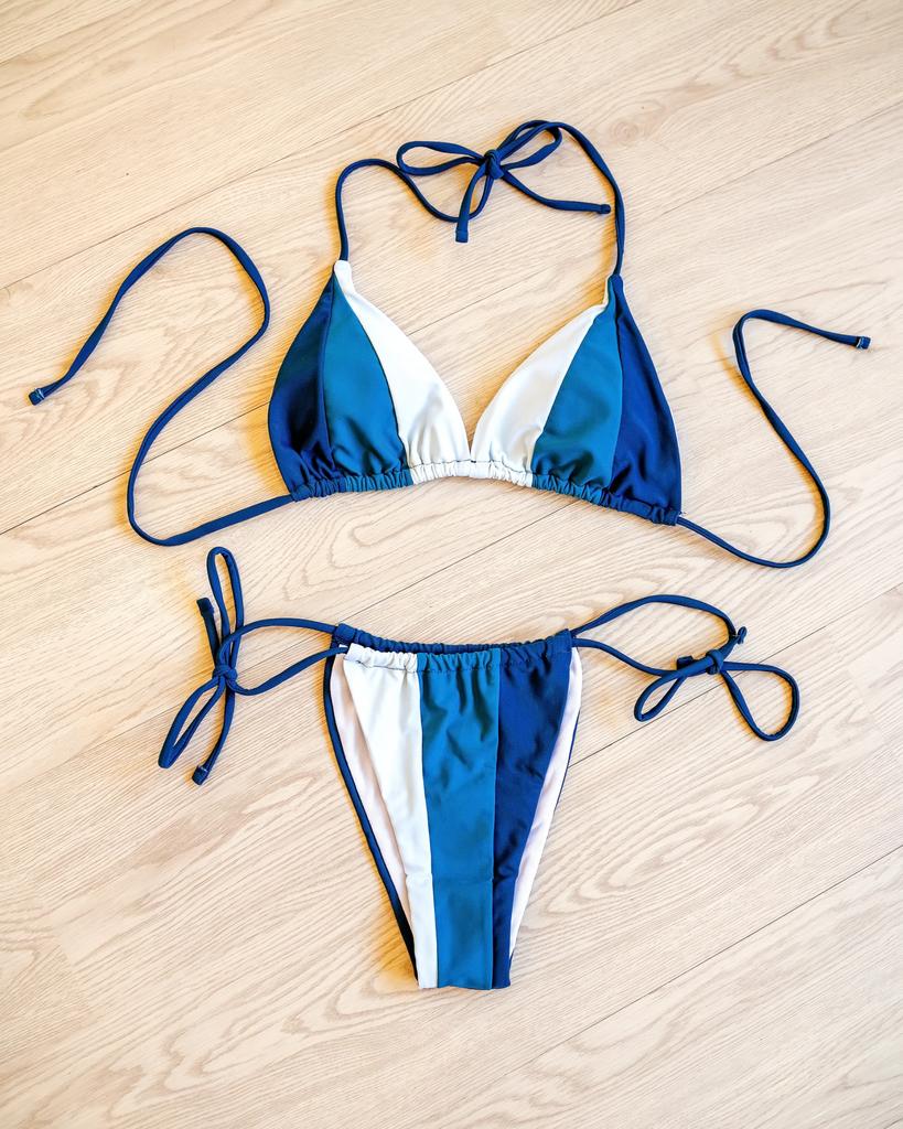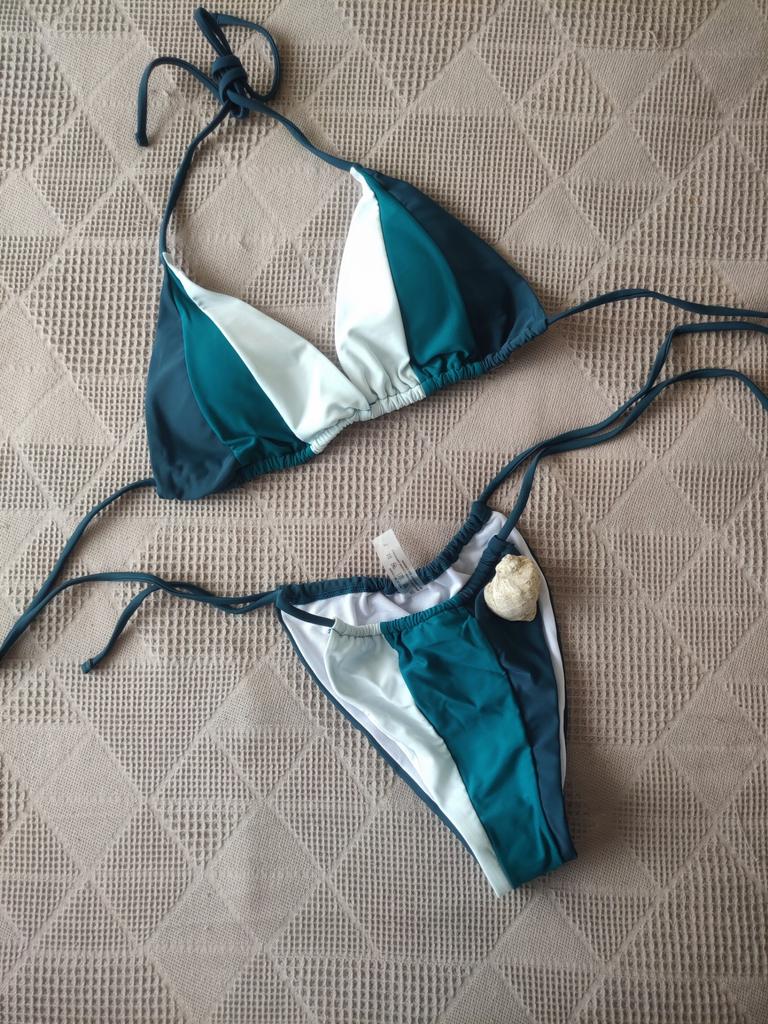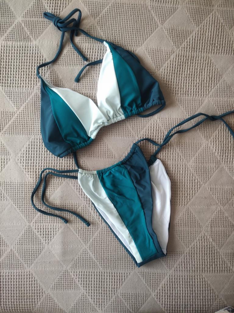 👙 Полосатый бикини от RoxyLicia Показываю симпатичный бюрюзово-синий полосатый раздельный купальник. Качество идеальное, на ластовице гигиеническая наклейка. В бюстике обычные чашечки, в плавках подкладка (иногда она чутка выворачивается и торчит белой стороной верх). На 84-65-88 подошёл размер S. Плавки и бра регулируется на завязках, так что с размером сложно промахнуться! Мне кажется, что комплект офигенный, могу рекомендовать! Доступные размеры S, M, L. Промокод на 5% скидку на любой заказ с Joom: GEER7POSC8 (активен, если шрифт красным цветом)