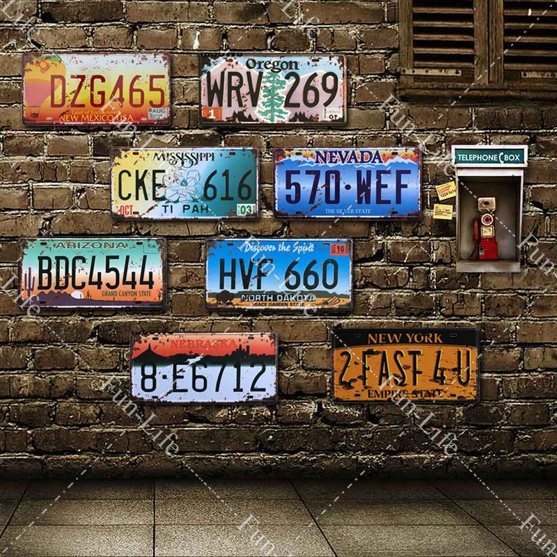Винтажный металлический плакат США Техас Нью-Йорк Калифорния номер автомобиля металлический декор номерного знака настенный бар паб гараж жестяные вывески и таблички