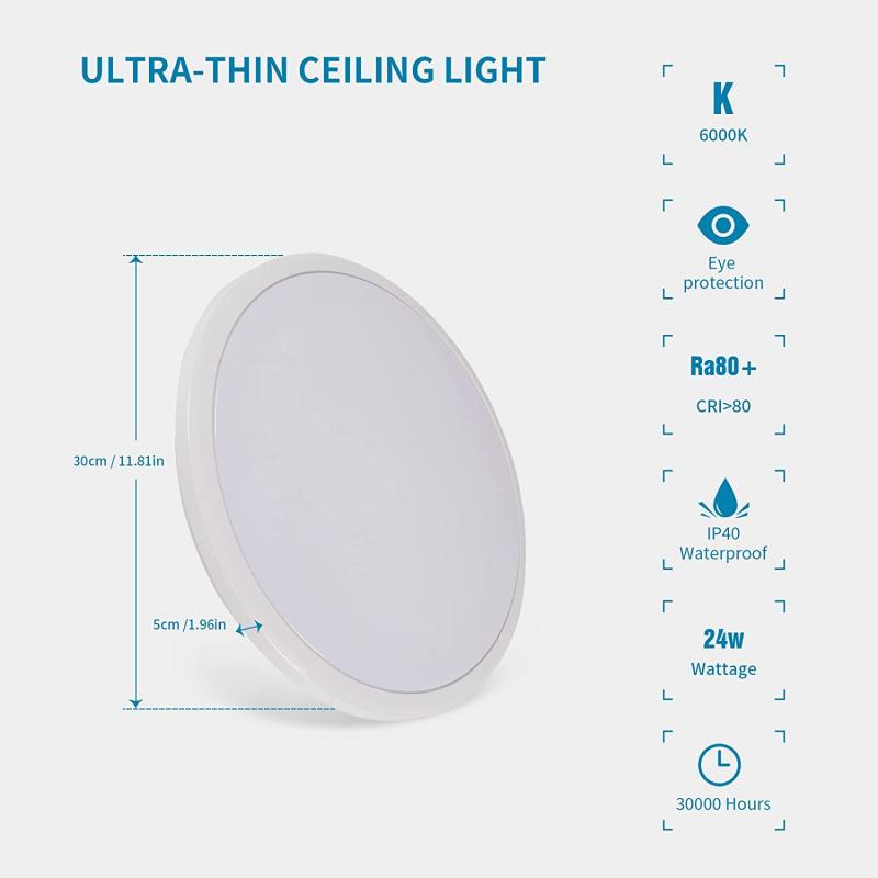 Круглый светодиодный потолочный светильник 24 Вт, водонепроницаемый IP40, белый светодиодный потолочный светильник для кухни, спальни, гостиной, балкона, прихожей, гаража, диаметр 30 см, 6500k