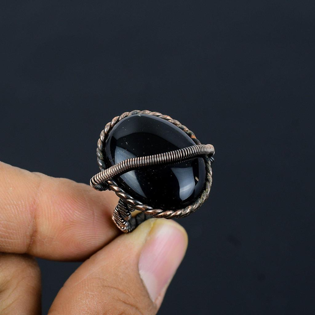 Кольцо ювелирных изделий черной драгоценной камня оникса обернутое медной проволокой Хандмаде для подарка — купить товар онлайн с бесплатной доставкой по всему миру!