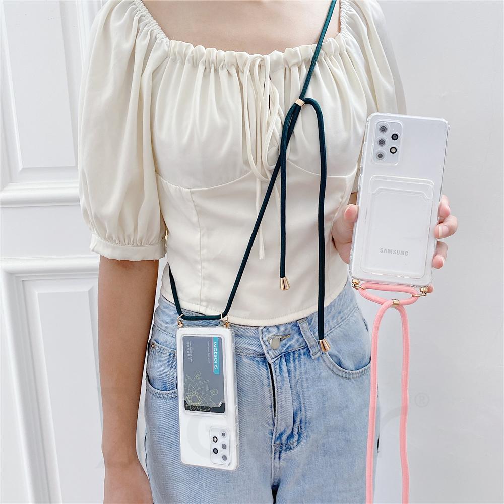 Мягкий прозрачный чехол из ТПУ с ремешком для карты для iphone 14 13 12 11 pro X Xr Xs max/Samsung S22 S21 S20 A13 A23 A33 A53 A12 A22 A32 A52 A72/Redmi 10 9 9A 9C 9T