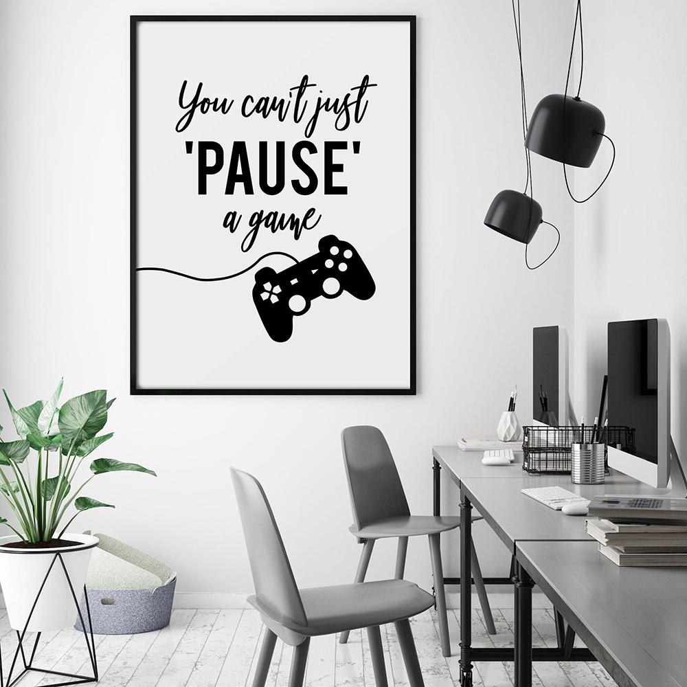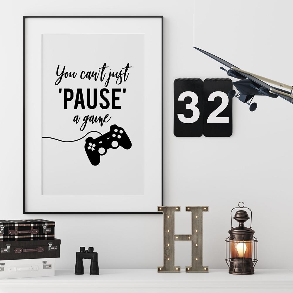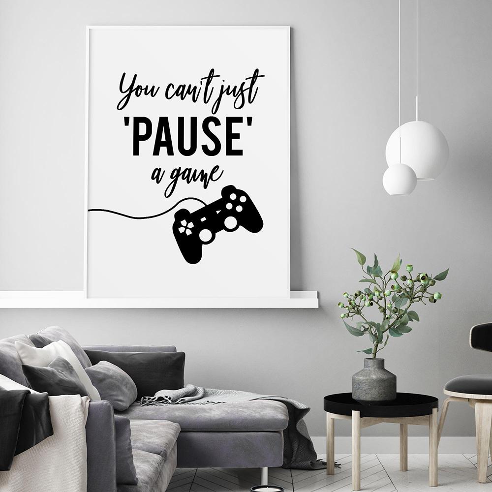 Геймерский игровой настенный художественный постер, черно-белая картина на холсте, вы не можете просто приостановить игру, контроллер цитаты, декор комнаты для мальчиков-подростков