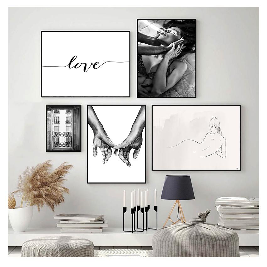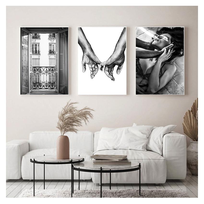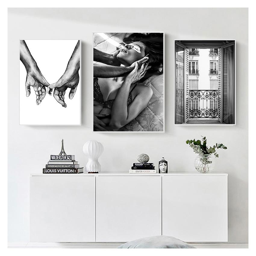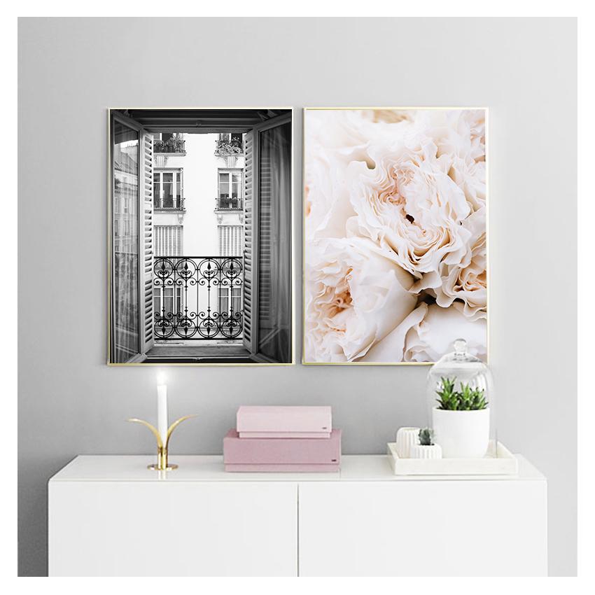 Окно Классический принт Wall Art Холст Картина Цветочная картина Современное украшение для гостиной Модный постер Черно-белая женщина
