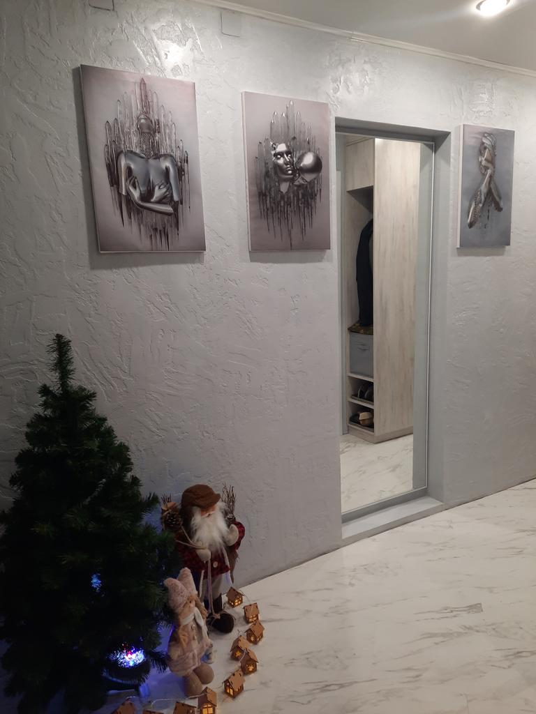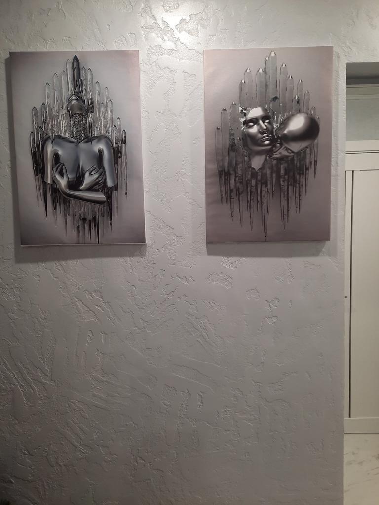Картина без подрамника, только холст. С одной стороны от зеркала надо было красиво закрыть эл. счетчик. Приняли решение повесить картину. Одна весела бы одиноко, подобрали три картины. Нам очень нравится. Цветная часть холста 40х60. Когда натягивали на подрамник с боков белый холст. У нас белые боковины смотрятся неплохо , а вы рассчитывайте этот момент при заказе.Хорошие подрамники 40х60 заказали на ОЗОН.