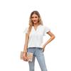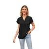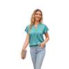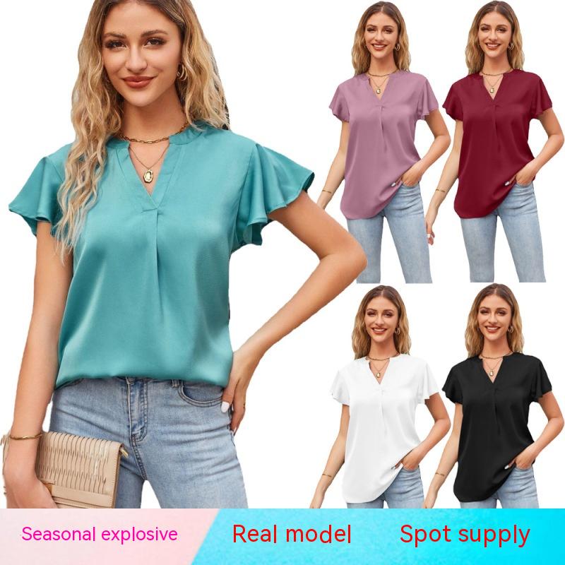 Летняя футболка в европейском и американском стиле, новый женский атласный топ с v-образным вырезом и рюшами на рукавах, модный офисный топ S-2XL
