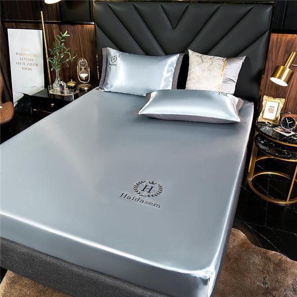 Удобная для кожи подушка, летний чехол из ледяного шелка, чехол для матраса с вышивкой, постельное белье, состоящий из трех частей с 2 наволочками