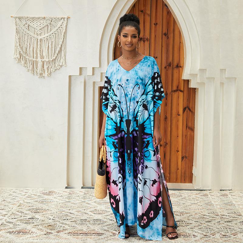 EDOLYNSA Женское кафтан с принтом бабочки, пляжное платье, плюс размер, купальник, накидка с рукавами «летучая мышь», бикини, купальный костюм, накидки, летний наряд Q1546