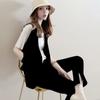 - Французский стиль вязания 2 шт костюмы женские ложные карманы однобортный поло воротник топ + длинные брюки модные комплекты из двух предметов