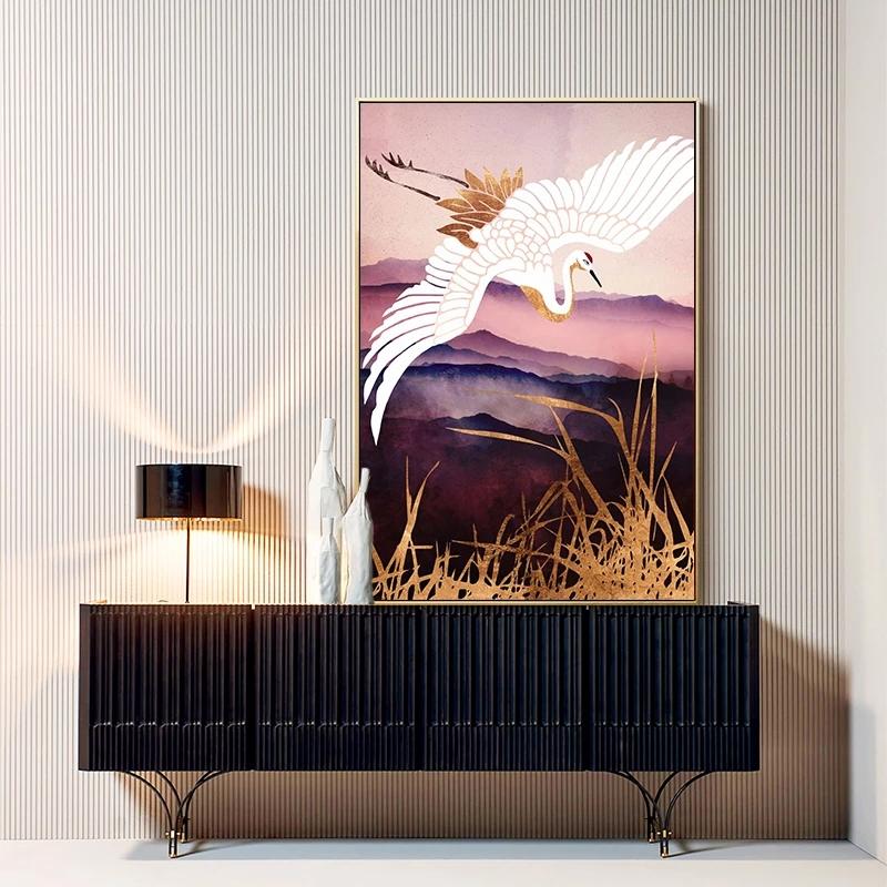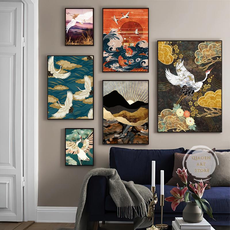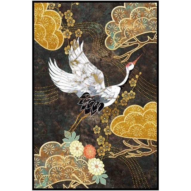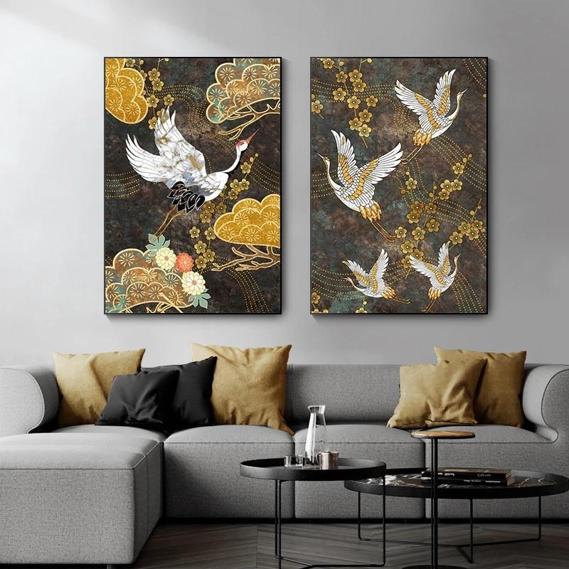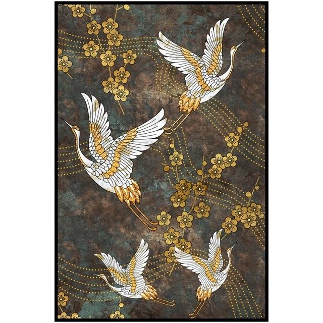 Ретро китайский стиль Золотой Летающий Журавль Абстрактное Солнце Животное Холст Картина Птицы Плакаты Отпечатки Настенная Картина для Гостиной