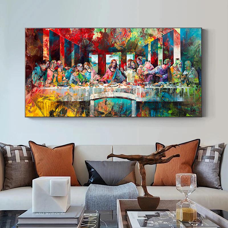 Абстрактные граффити «Тайная вечеря Иисус и двенадцать учеников», холст, картина, постер, настенная картина, христианская комната, домашний декор
