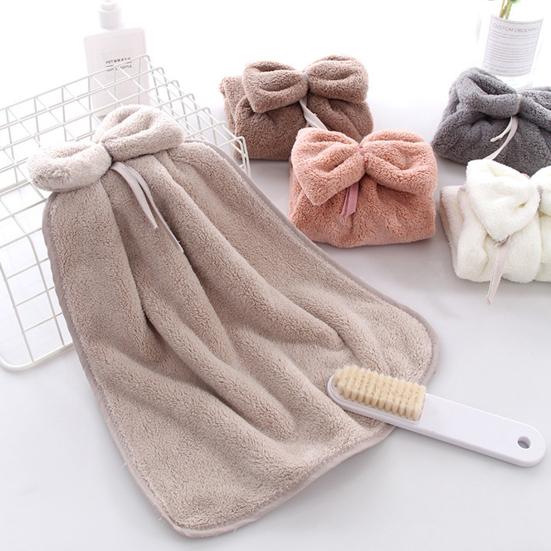 Полотенце для рук, удобные, не осыпающиеся, моющиеся, коралловый бархат, бант, кухонные аксессуары